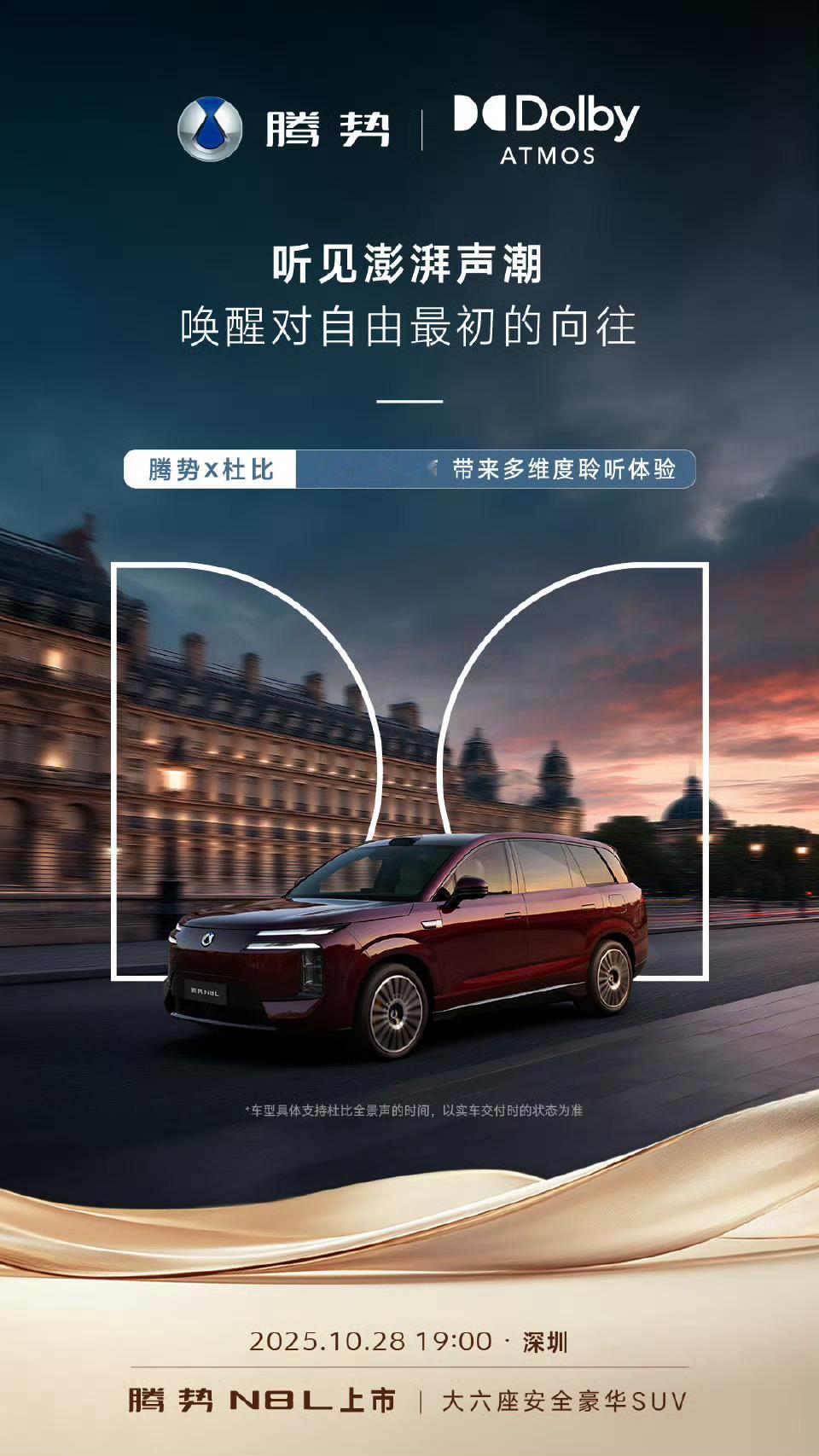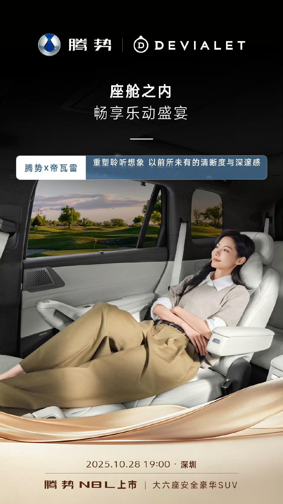 腾势N8L是美好出行家,更是美好生活家。我们联动生态合作伙伴,打造「人车家」智慧生态,将全屋智能、顶级影音、手机应用等无缝接入出行场景。为更多用户带来贴心、美好、便捷的出行服务。今晚19:00,腾势N8L上市,将会给大家分享更多重磅内容,敬请期待!美好生活腾势而上腾势N8L大六座安全豪华SUV