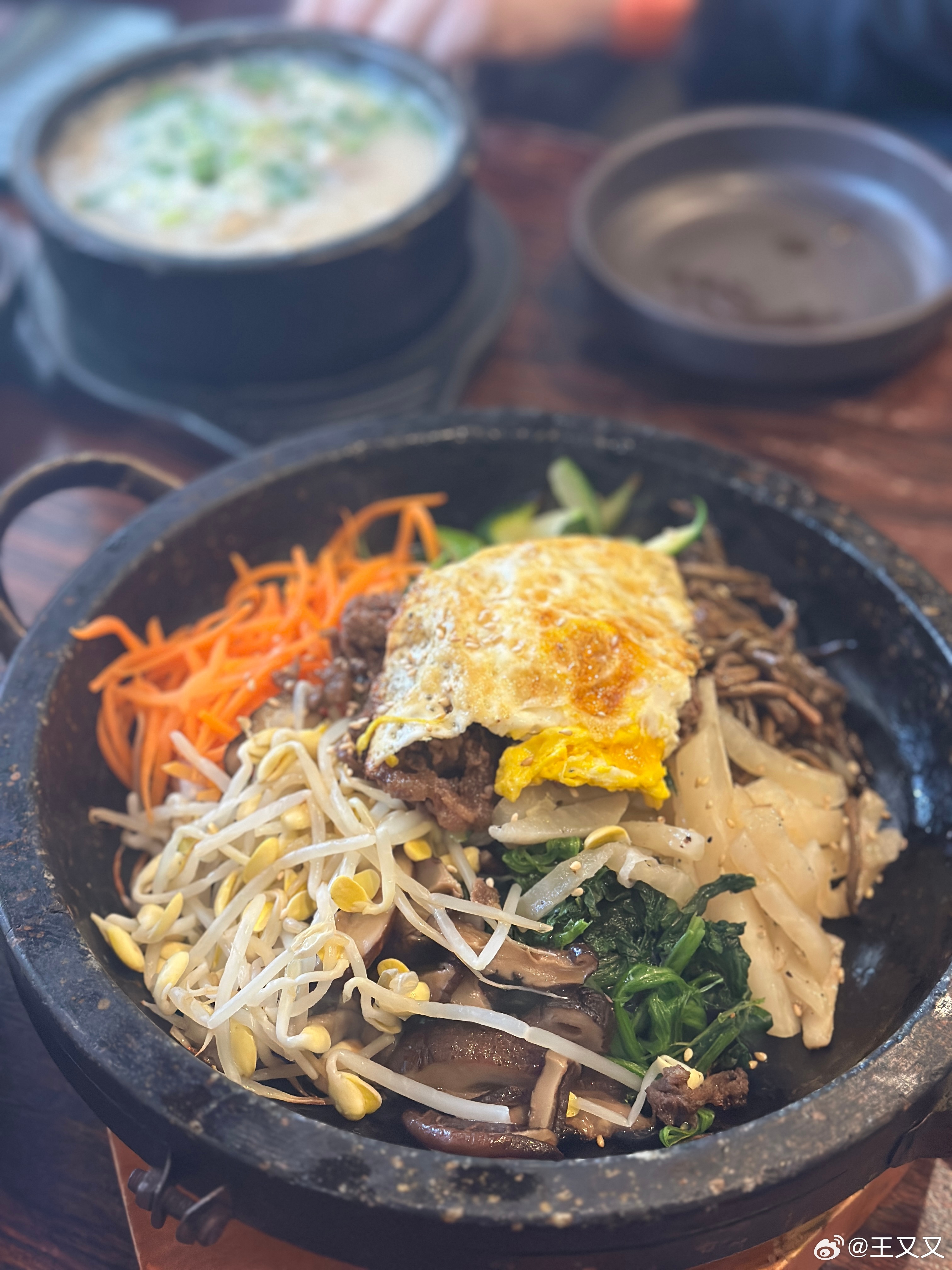 午餐:石锅拌饭(实在需要外食又不想吃沙拉经常会点,至少保证几种蔬菜)、牛筋汤(调味只有炎)、吃了两块韩式烤肉,可以吃出来加了太多糖,原来可好这口儿了。吃完这一顿马上晕碳了,好久没吃白米饭以及这么多糖