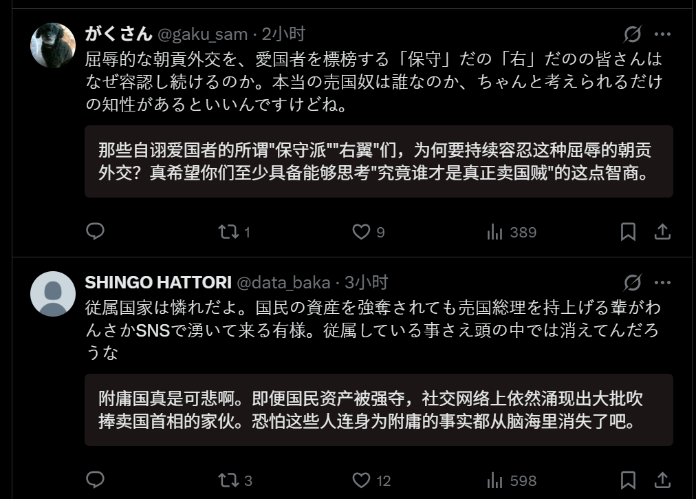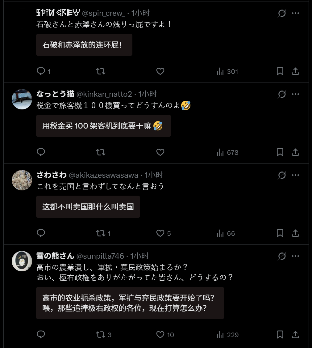 🔻除了骂高市早苗卖国,还有骂石破茂的。