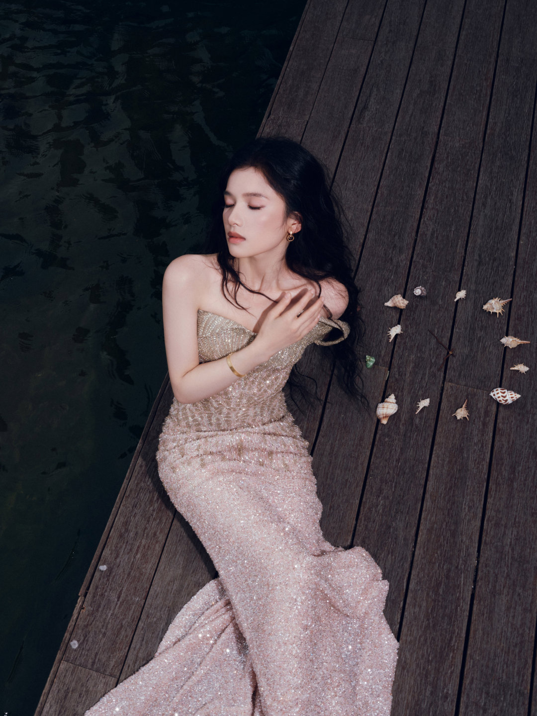 张婧仪 × ELLE风尚大典张婧仪香槟粉鱼尾裙