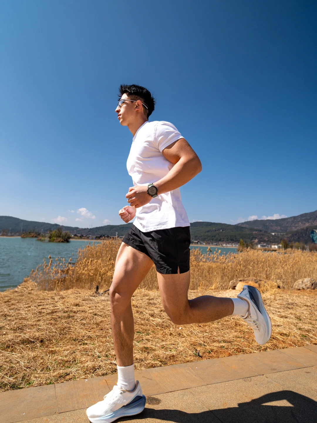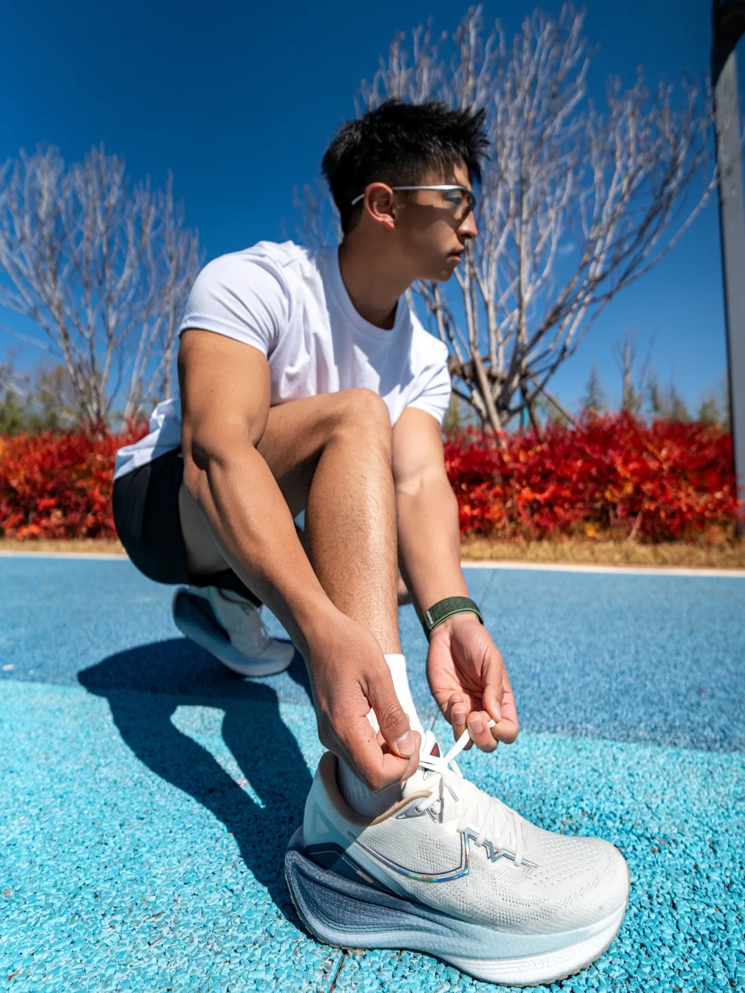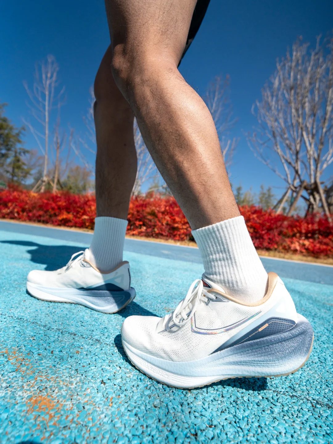 抓拍奔跑时鞋底优雅弯折的弧线