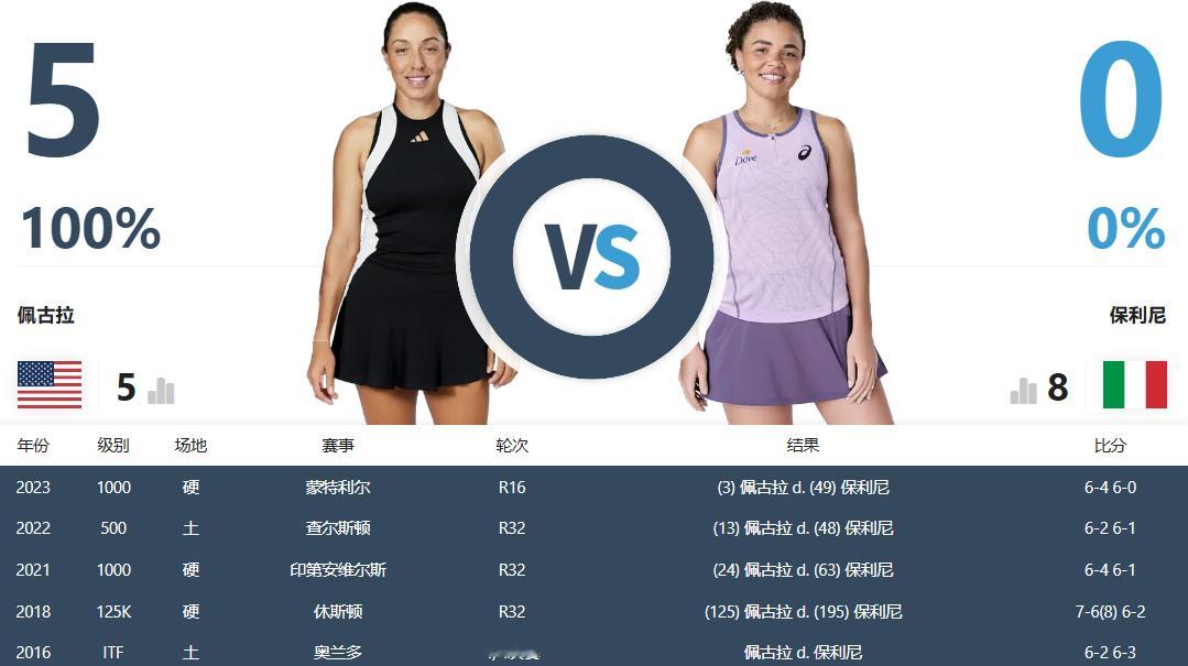 保利尼:2-5萨巴伦卡、3-3高芙、0-5佩古拉