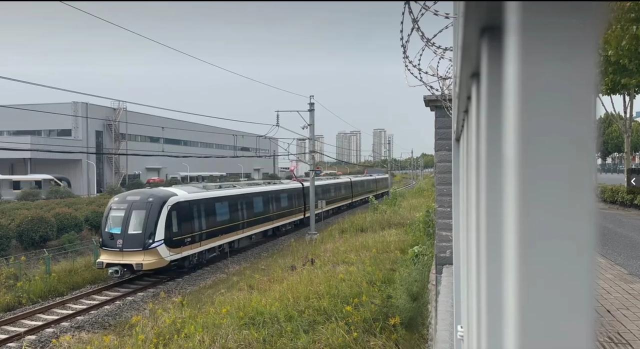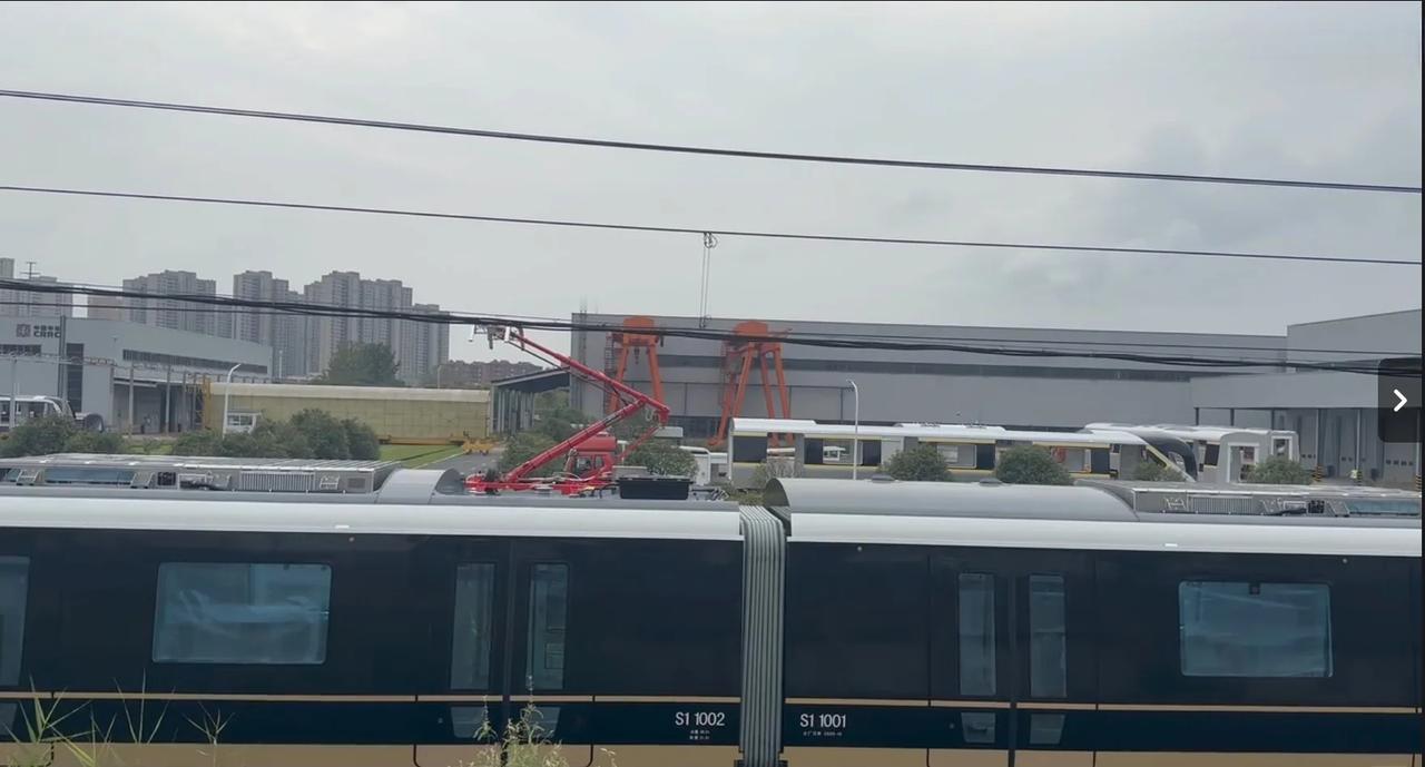 合肥地铁S110列车正在合肥中车试车热滑。 合肥地铁S1线预计2026年开通运营,S11001-S11004合肥地铁S1号线 轻轨