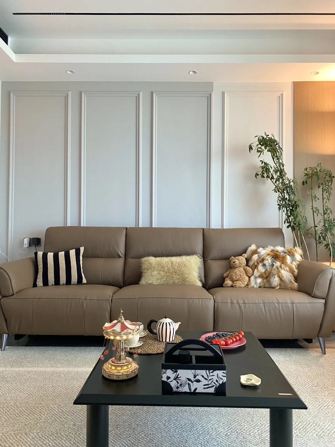 先来说说这个颜色我就非常满意,可可棕色特别适合我家的风格,和我沙发背景墙的木饰面相呼应,显得很高级耐看