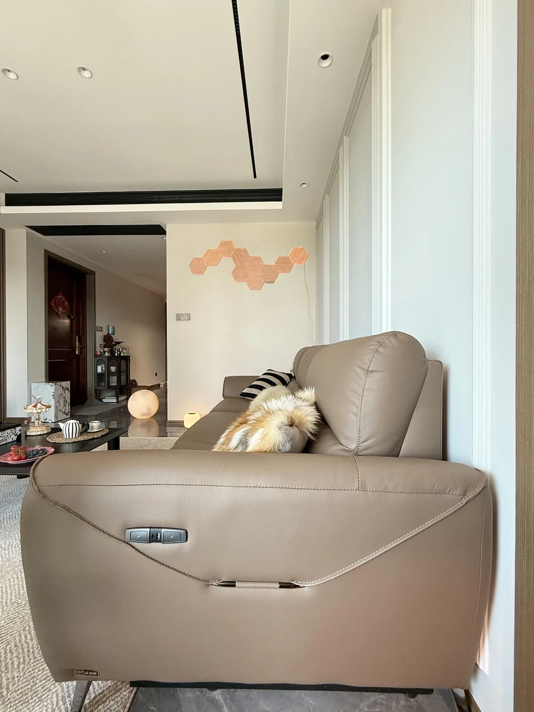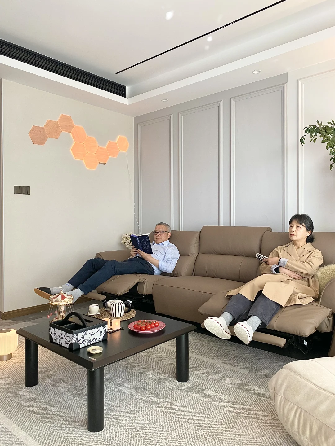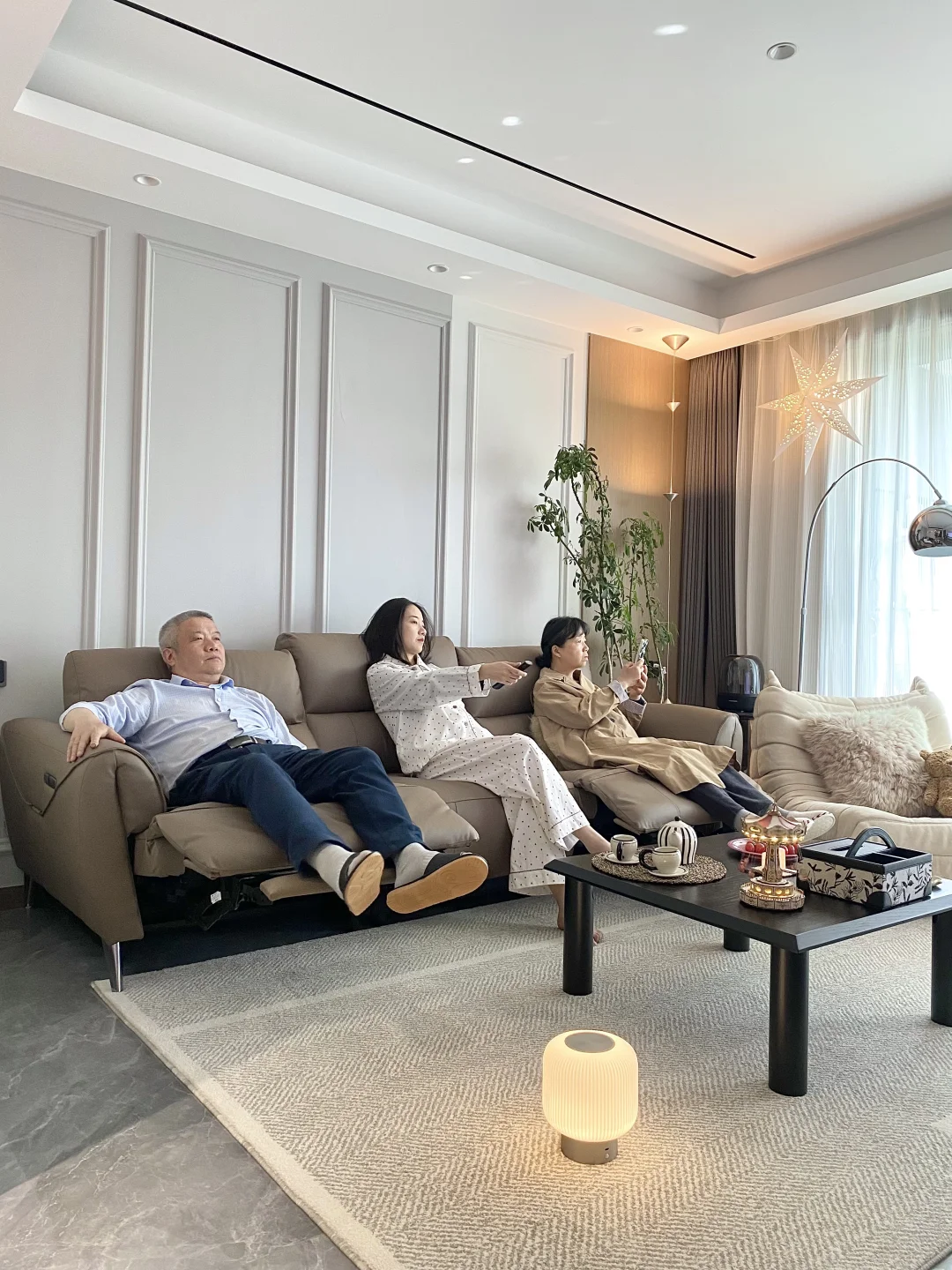 zui重要的是我们全家都喜欢它的双电动躺位,可以多角度调节,在家也有头等舱一般的享受,爸妈来了就喜欢躺在上面刷刷手机,一起看看电视,真的很惬意。我爸说躺久了也不会像普通沙发一样费腰,说我这个沙发是真的买对了~