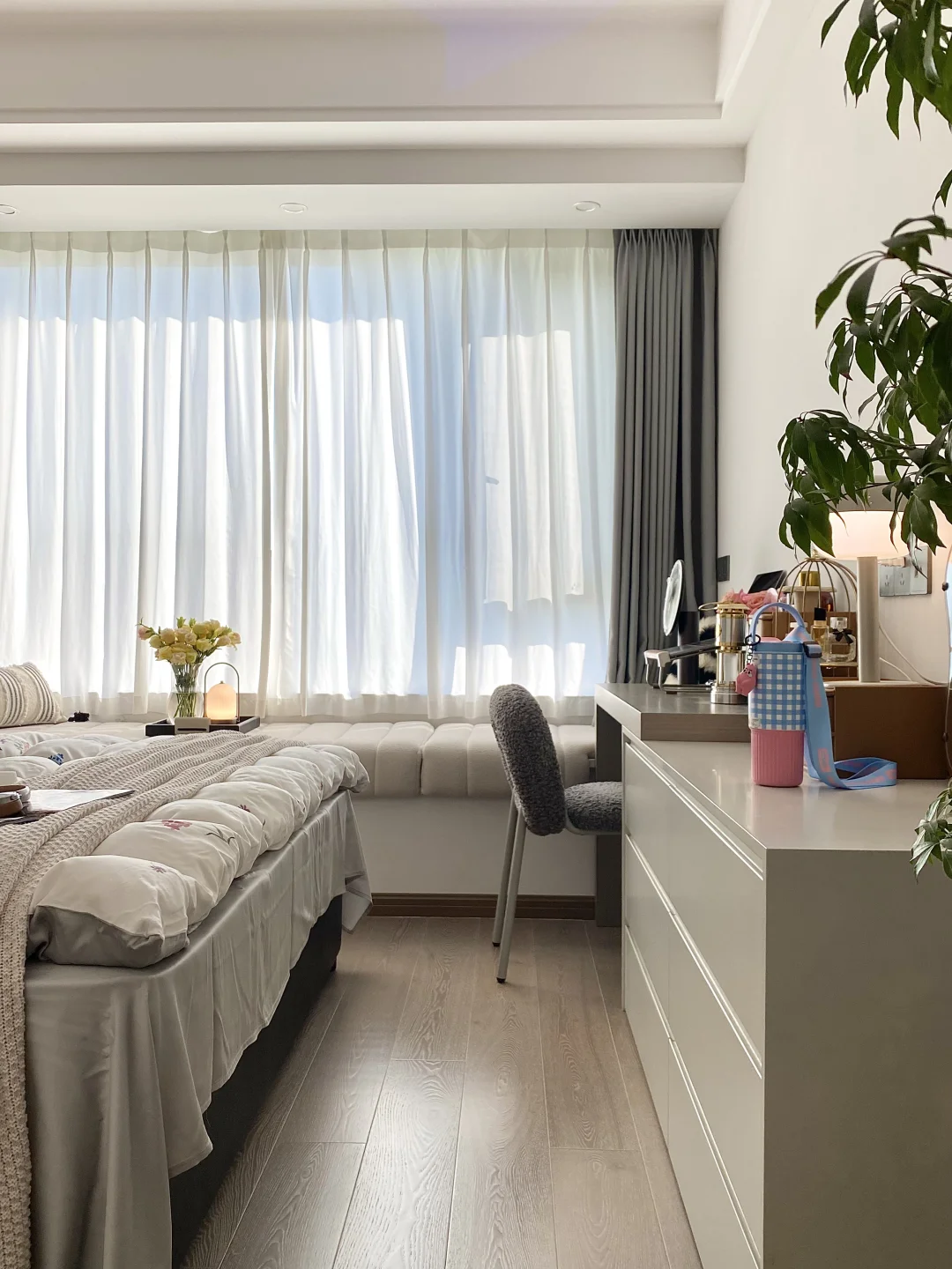 Roomtour|浅色窗帘搭配月枝影真的太温柔了~