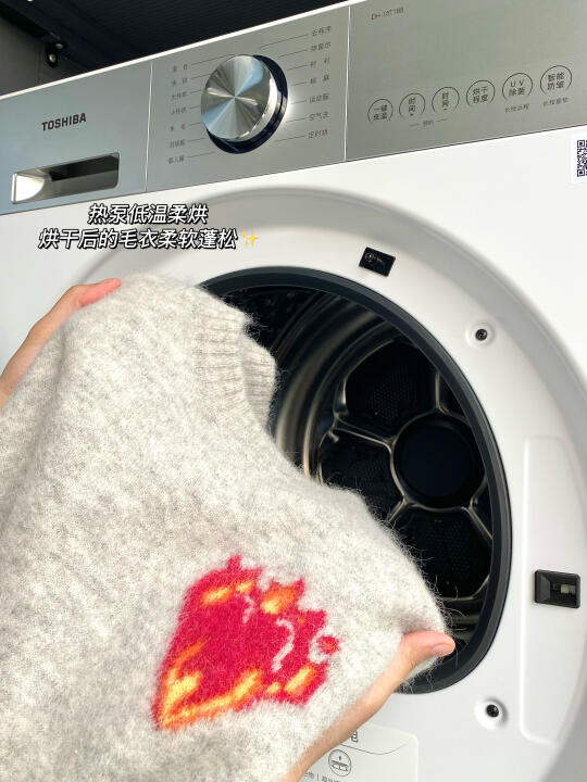 整个烘干过程使用的是平均42℃热泵柔烘,像羊毛衫这种娇嫩的衣物也不怕缩水变形,直接一键低温开启仿体感精烘,烘完拿出来松松软软的,恨不得立马穿上身~