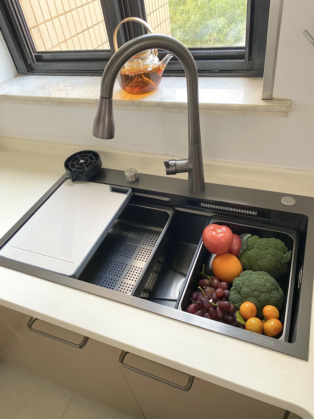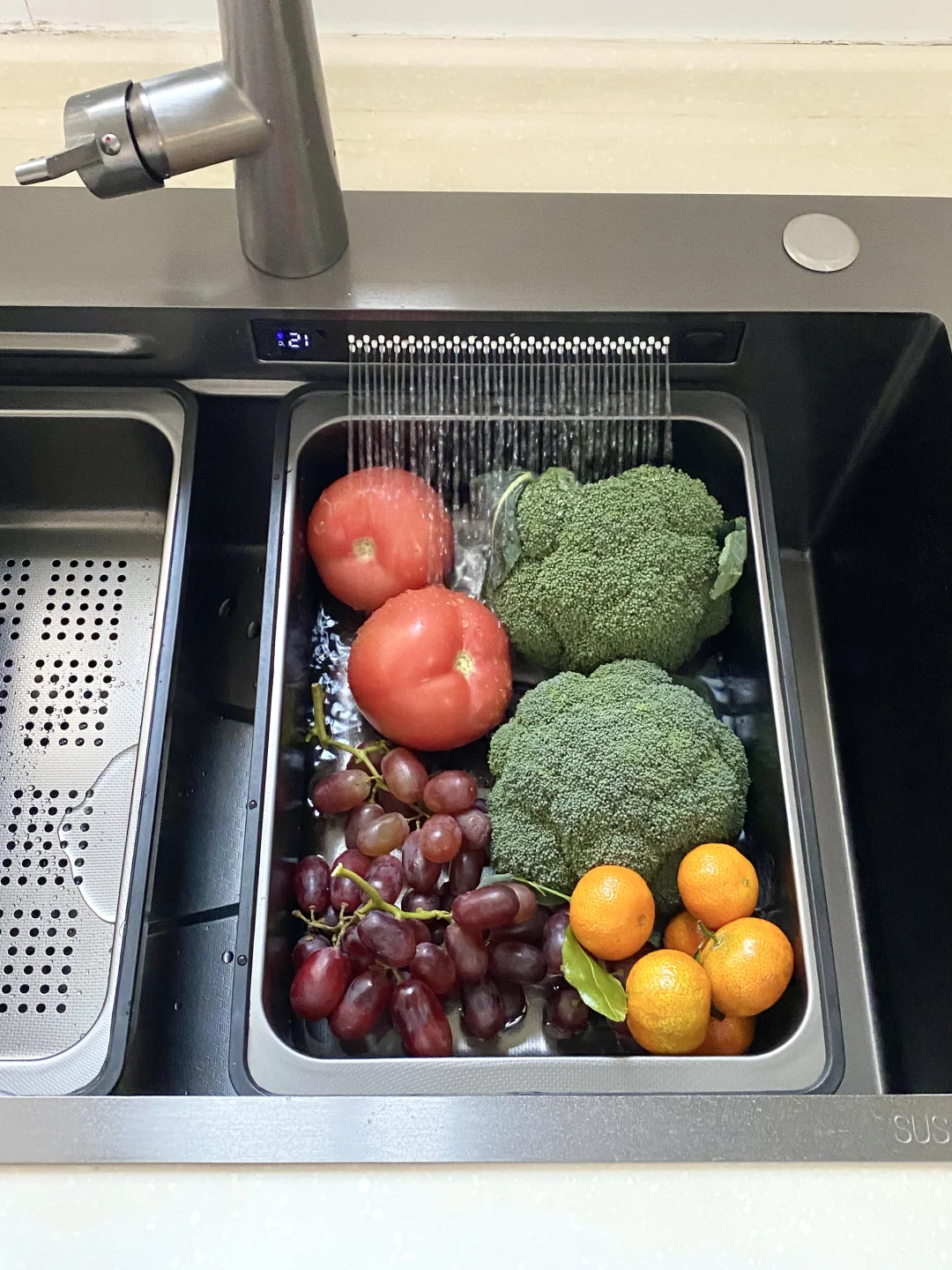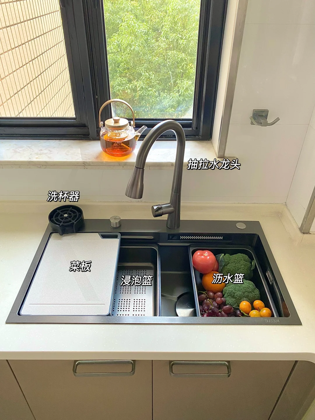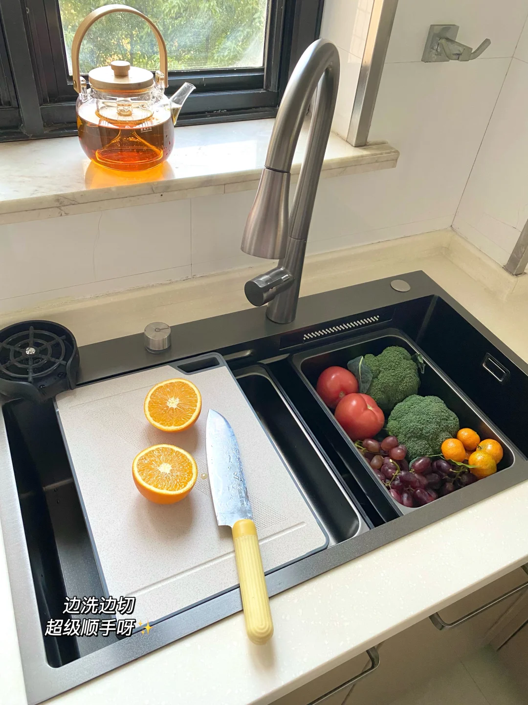 而且配套搭配了盆中盆、沥水篮、菜板、洗杯器~
