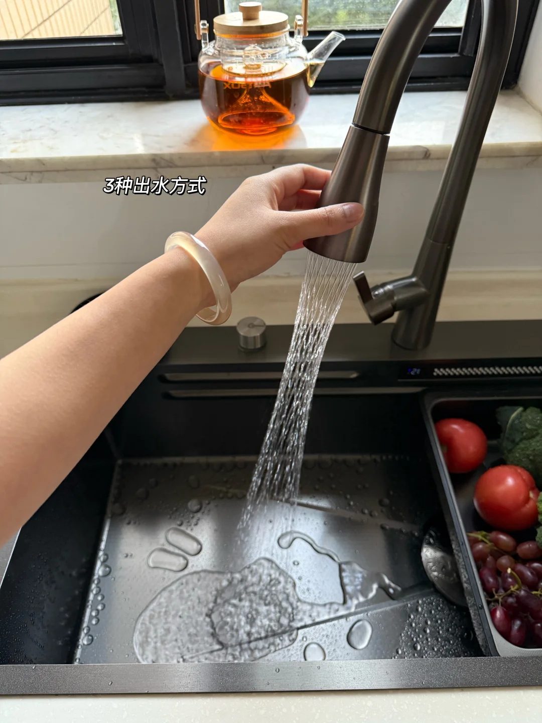 抽拉水龙头有3种模式,另外还有瀑布出水模式,谁懂这样洗水果有多方便呀!!