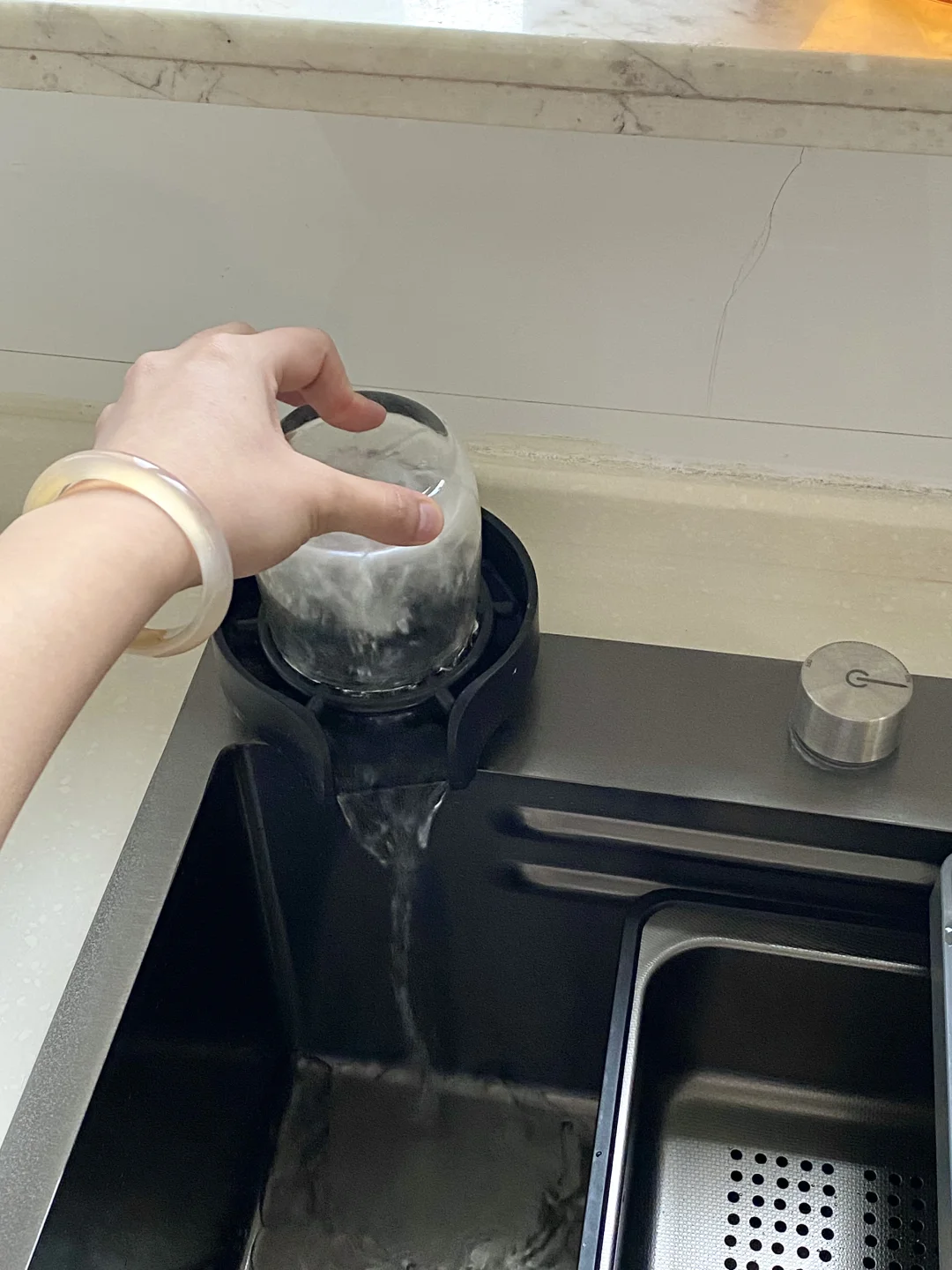 洗杯器是高压出水的,三两下就可以把杯子洗干净,太省事了!!