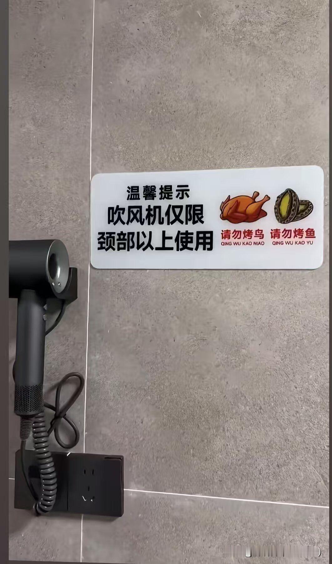 酒店关于吹风机的正确用途,也是煞费苦心! 一酒店关于吹风机正确用途,特意提醒了,不能烧烤,不能烤鱼! 看样子酒店有人投诉了,吹风机有异味! 以前不是有人有酒店烧水壶煮袜子,煮内裤! 还有人用了酒店的毛巾刷牙杯得了脚气的! 这下把酒店逼急了,只能图文并茂了!