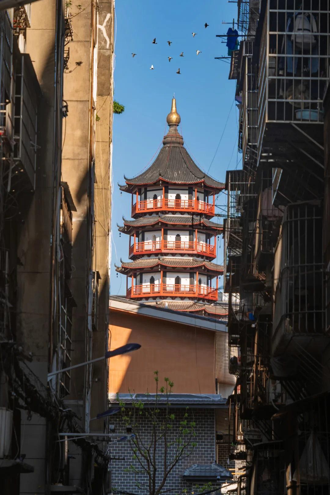 到航会堂侧路,巷子的尽头是绳金塔,很有趣的机位