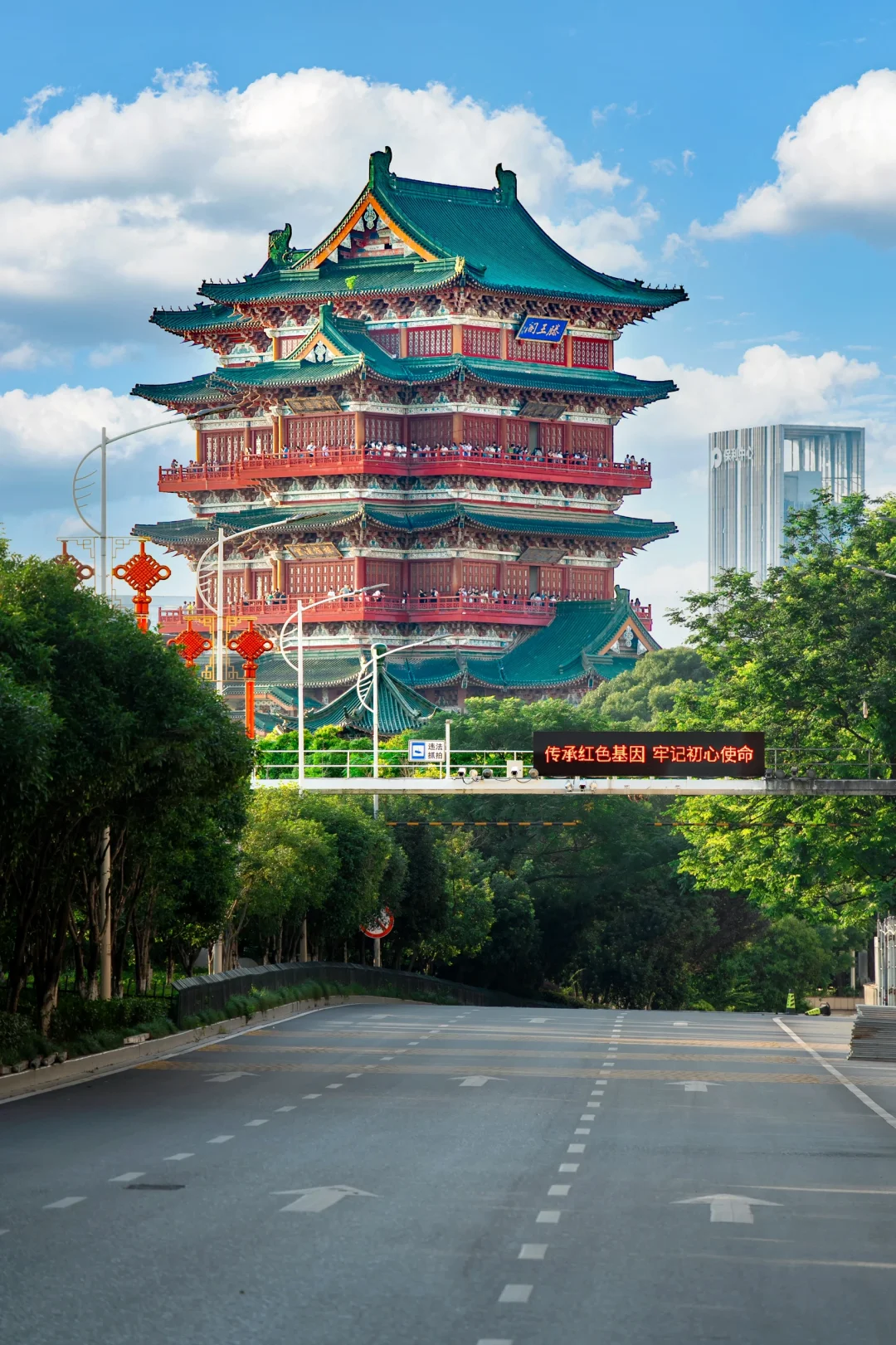去滕王阁的路上就能看到这个机位,在人行道拍照就很美,但是要注意安全