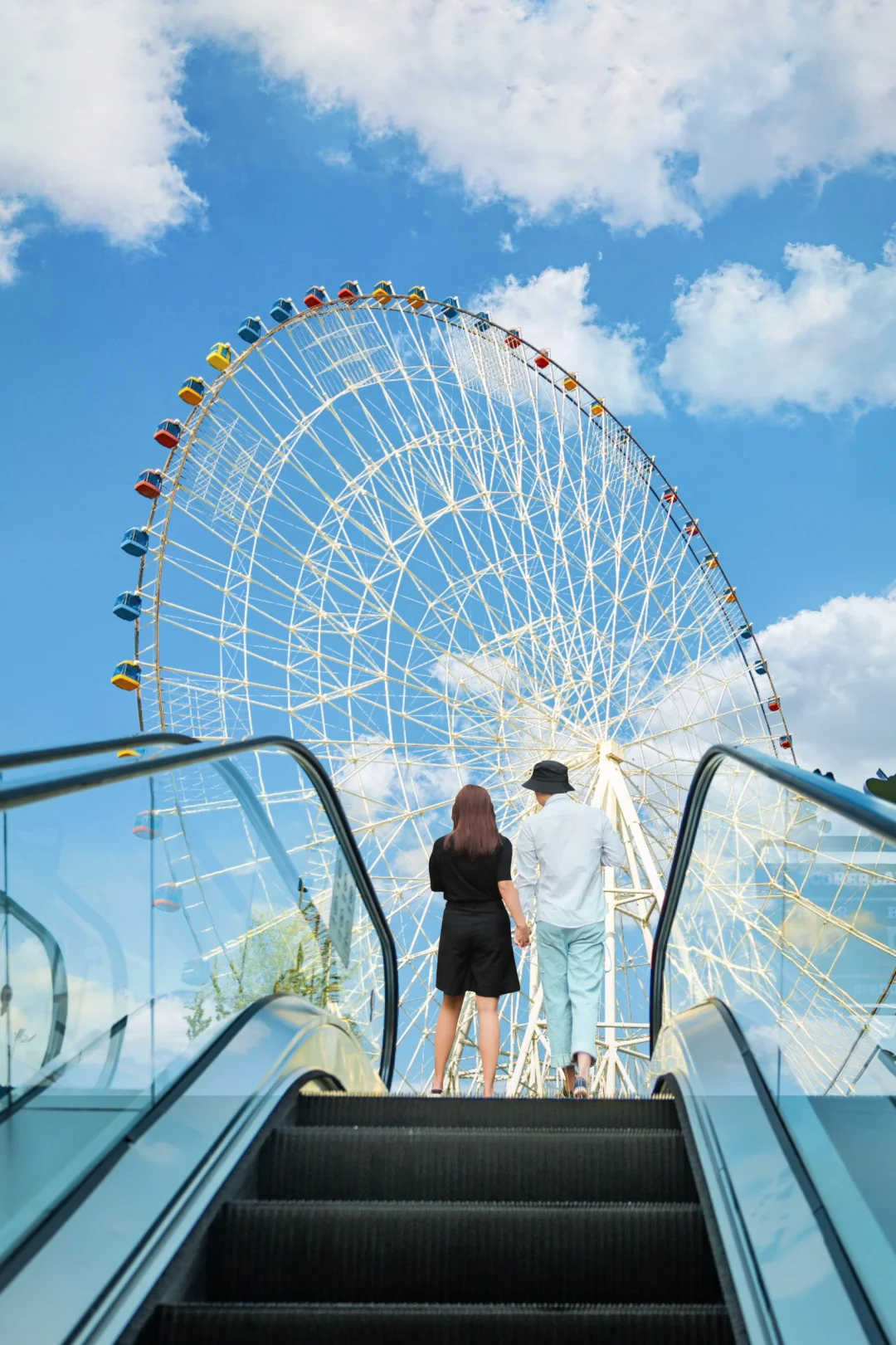 拍照机位在马路对面的万象城2号门门口的楼梯这里,下午早点来人会少一点