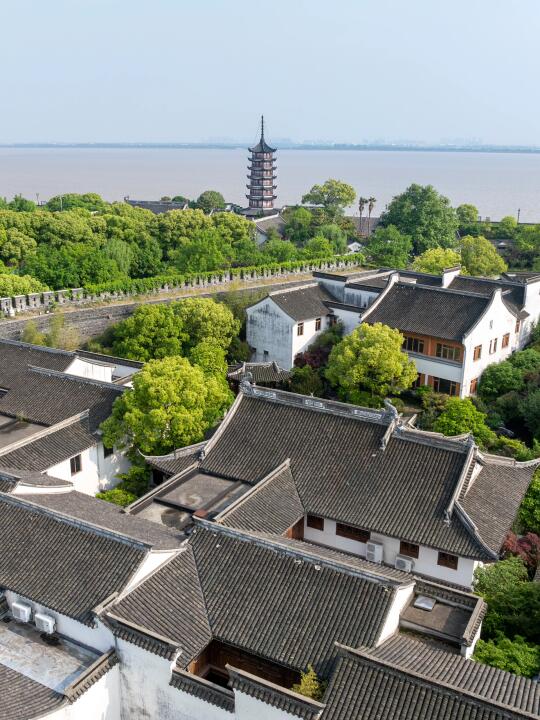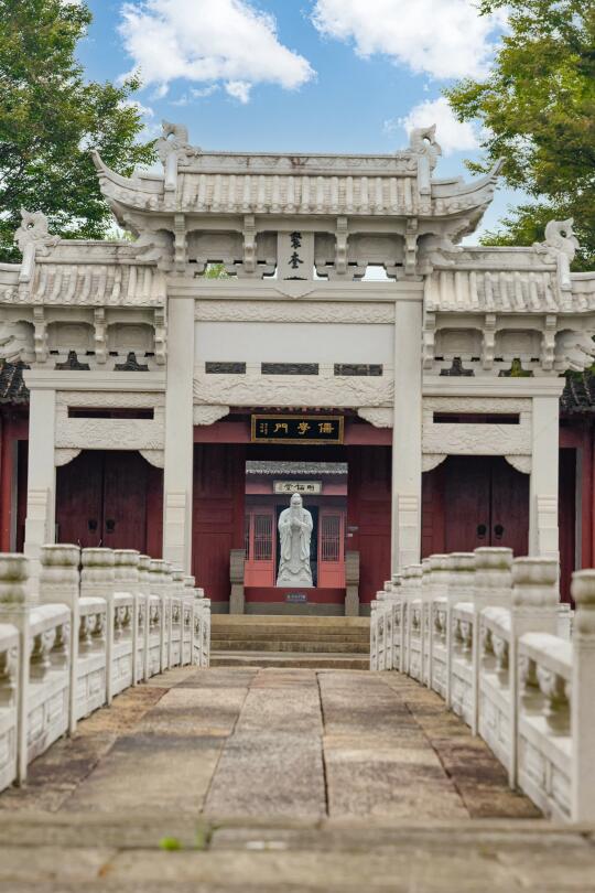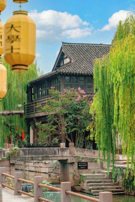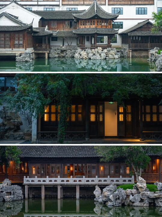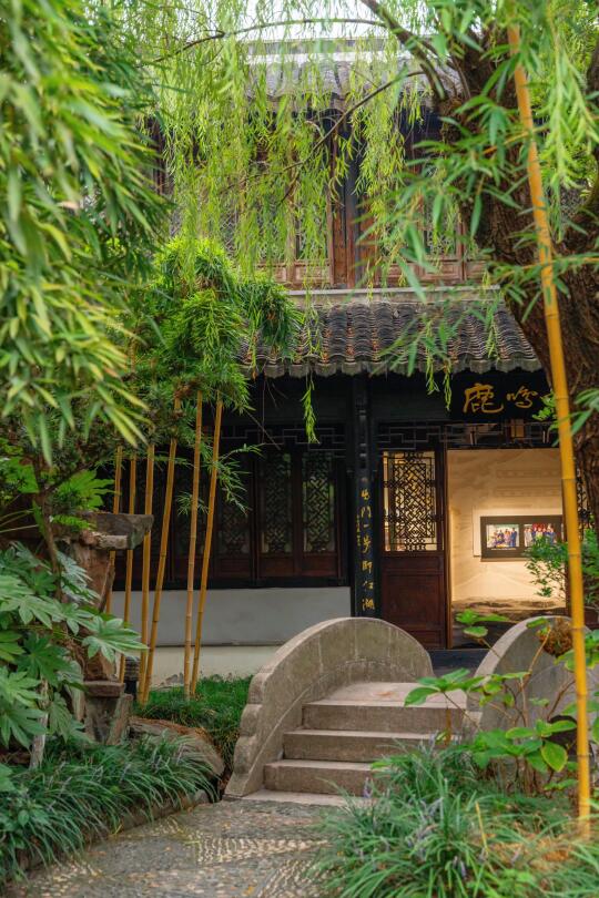 传统明清古建筑,白墙青瓦是水墨画的标志,内存有“九龙匾”、古罗汉松、书法石刻拓片等“三宝”