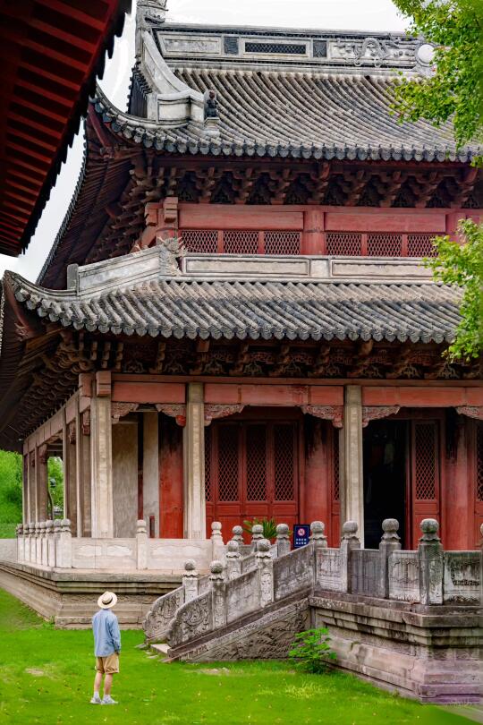 一座祭祀海神的庙宇,气势恢宏的建筑风格,具有浓厚的历史文化氛围,利用立柱框架拍照很好看