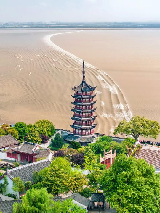 钱塘江大潮天下奇观“一线潮”的最佳观赏点。占鳌塔是明代万历年间建造,也观潮胜地的标志性建筑
