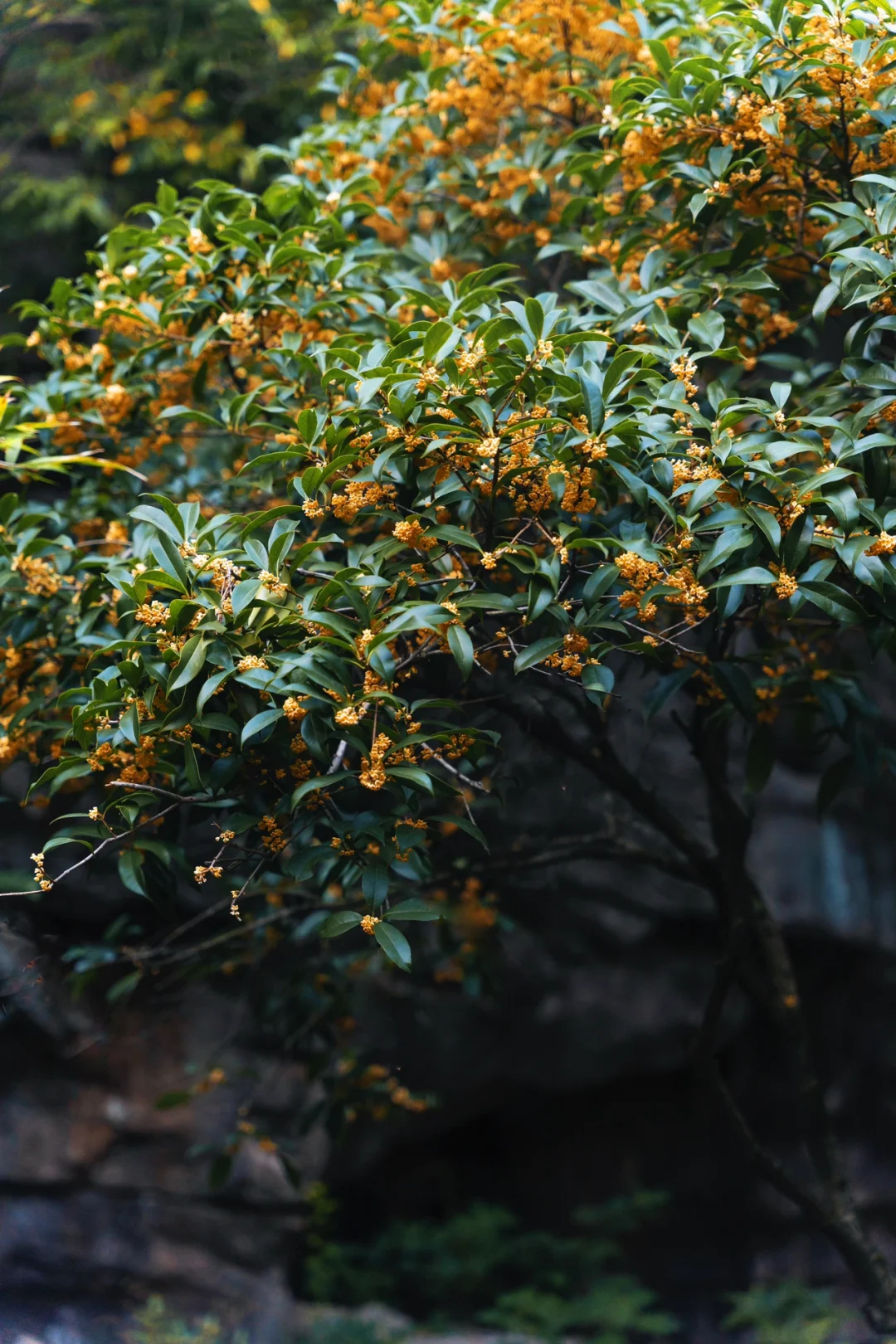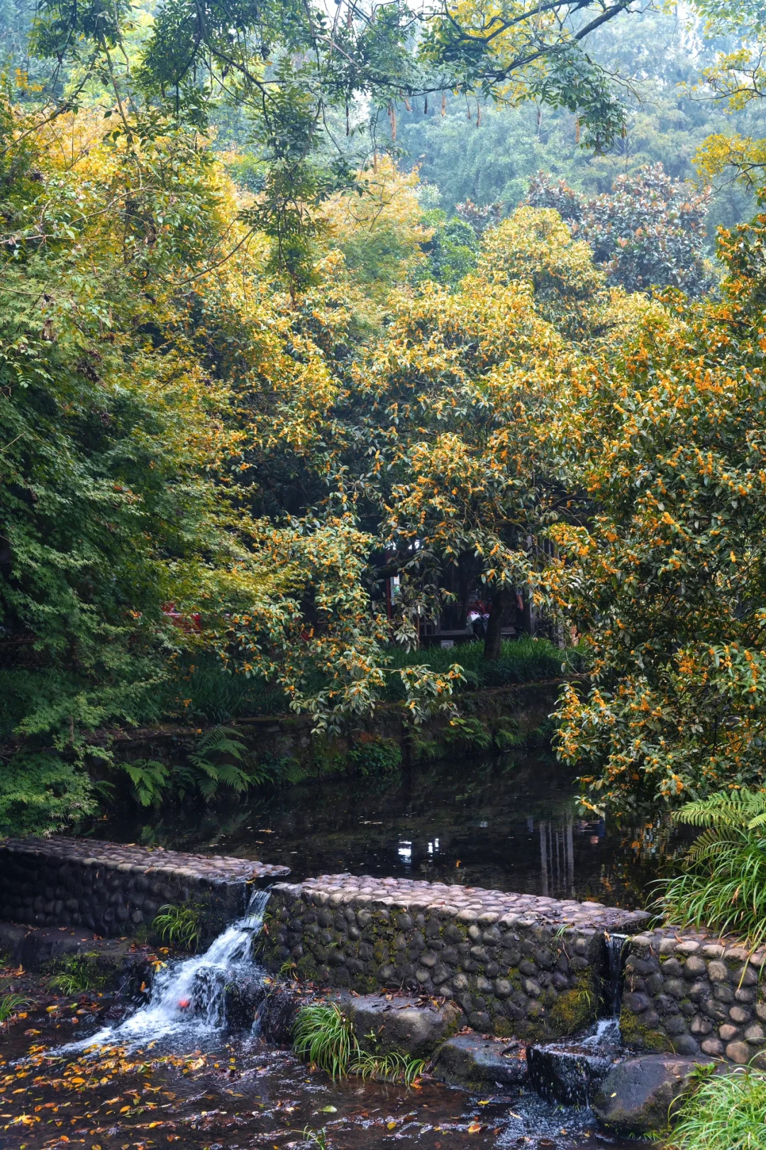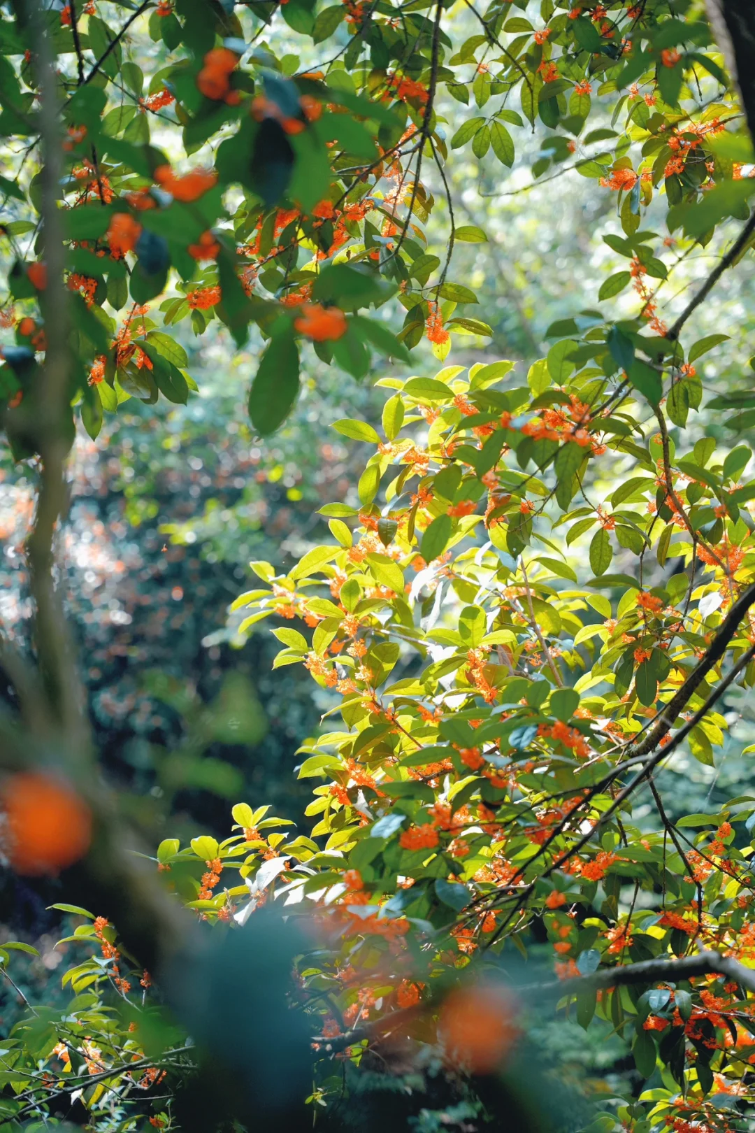 植物园桂花林,已经可以用成林形容了,大面积的桂花树还很高大,还有一棵“丹桂王”我最喜欢的落花流水的打卡机位也在这里。