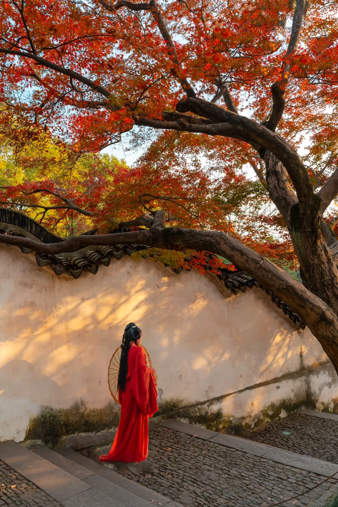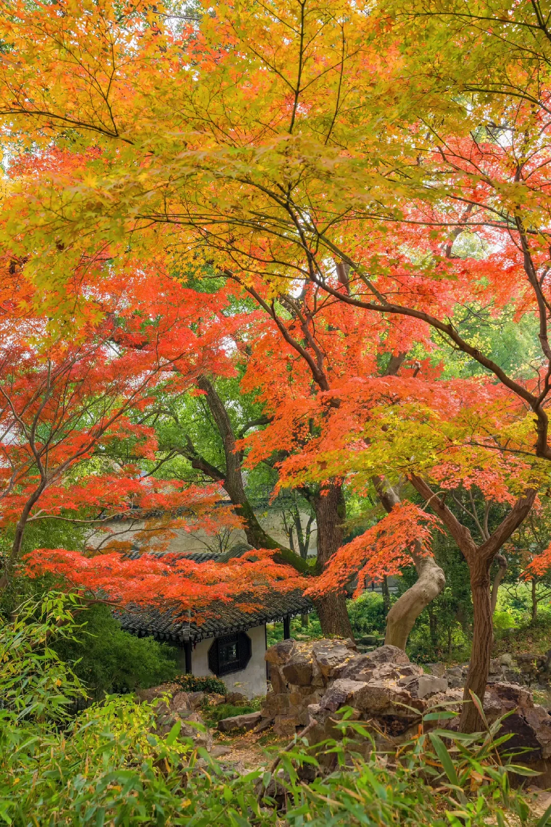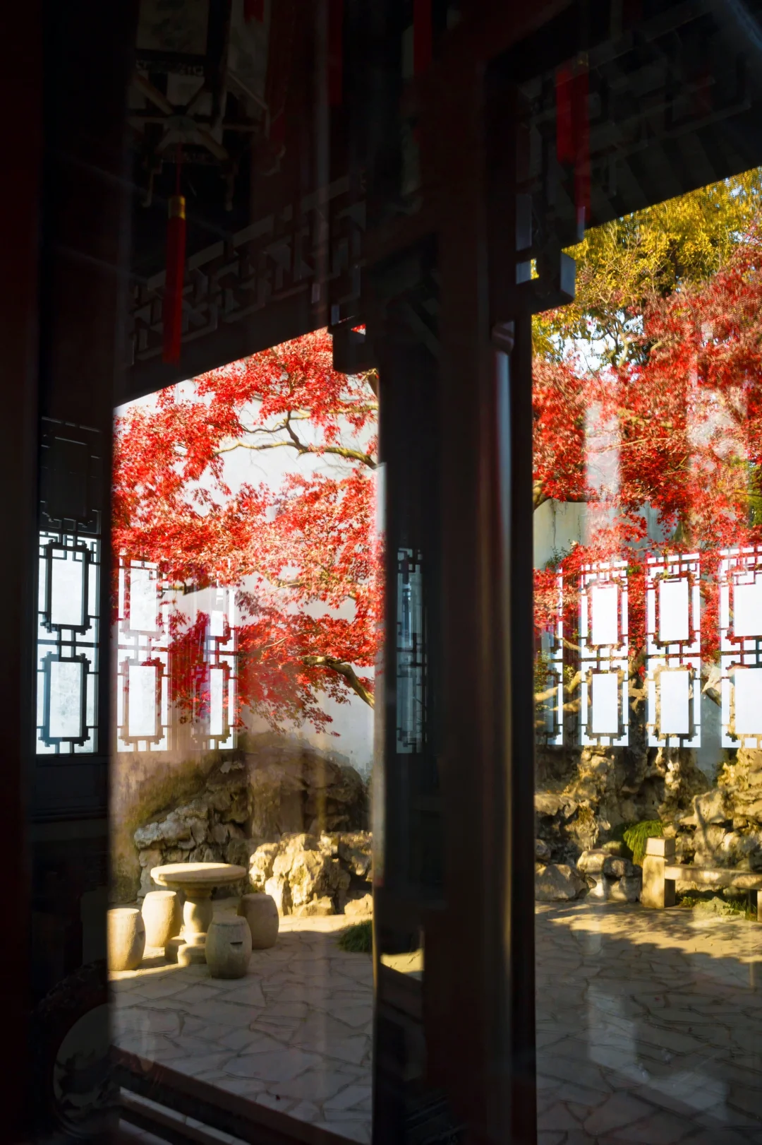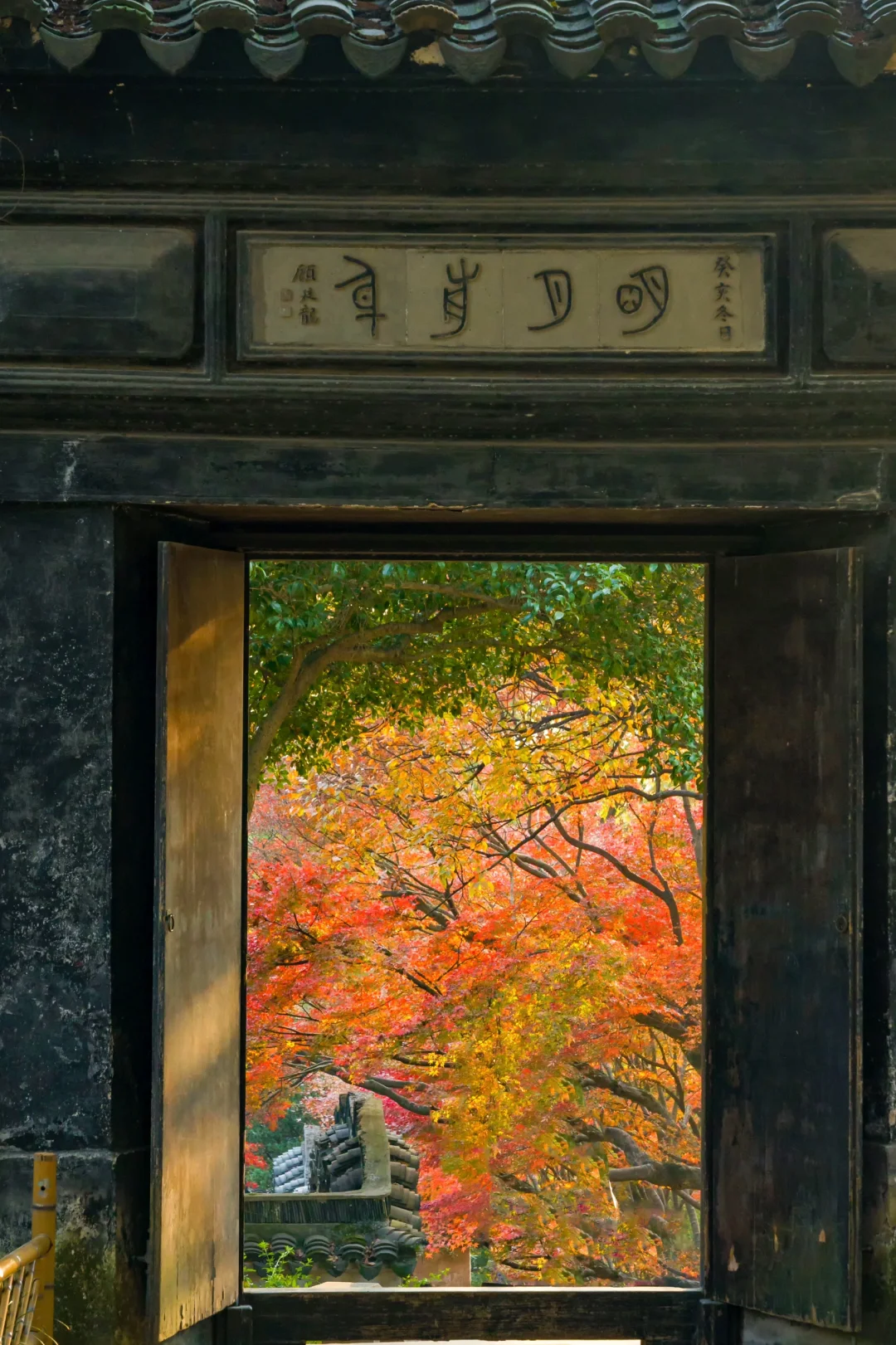 秋日打卡除了百年银杏,还有后山的秋色枫林尽染更是一绝,一步一景的框景尽显中式之美