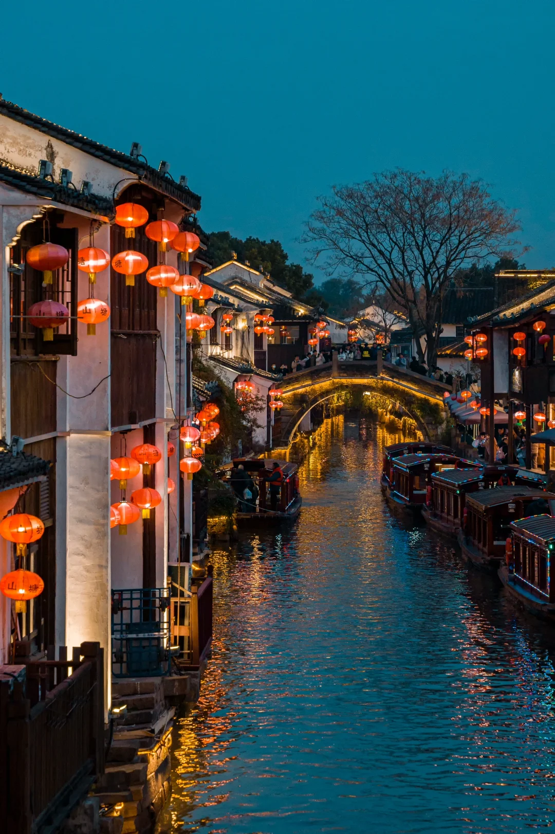 来苏州必打卡的山塘街,蓝调下拍照真是一绝,梦回江南大唐盛世的夜色