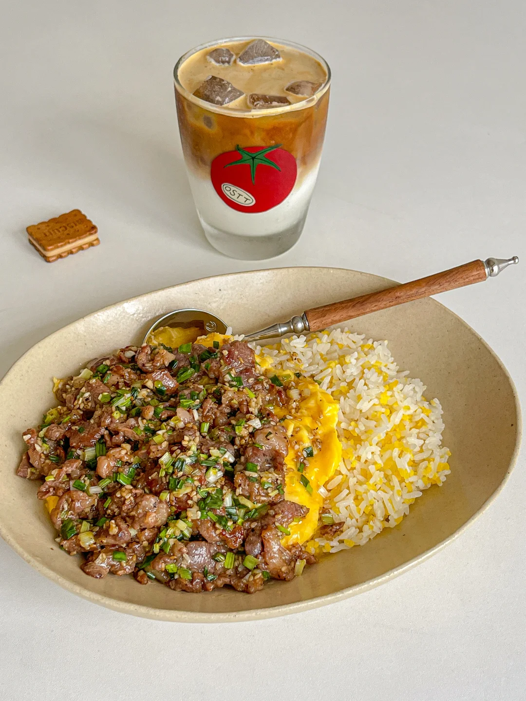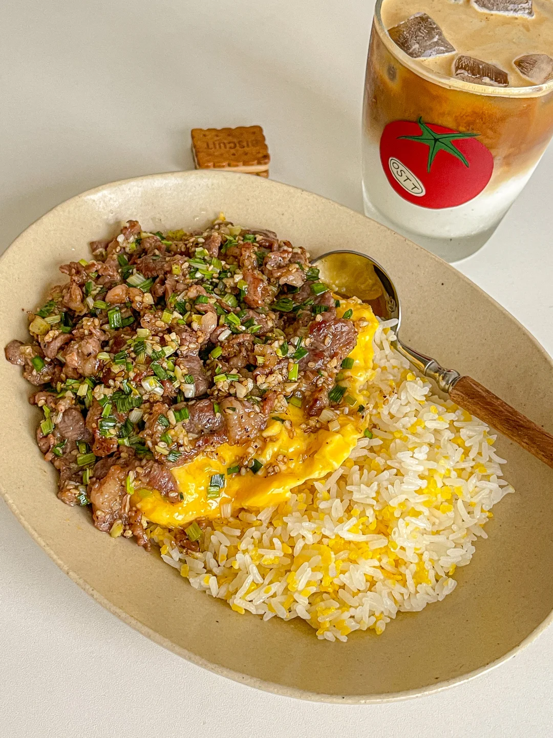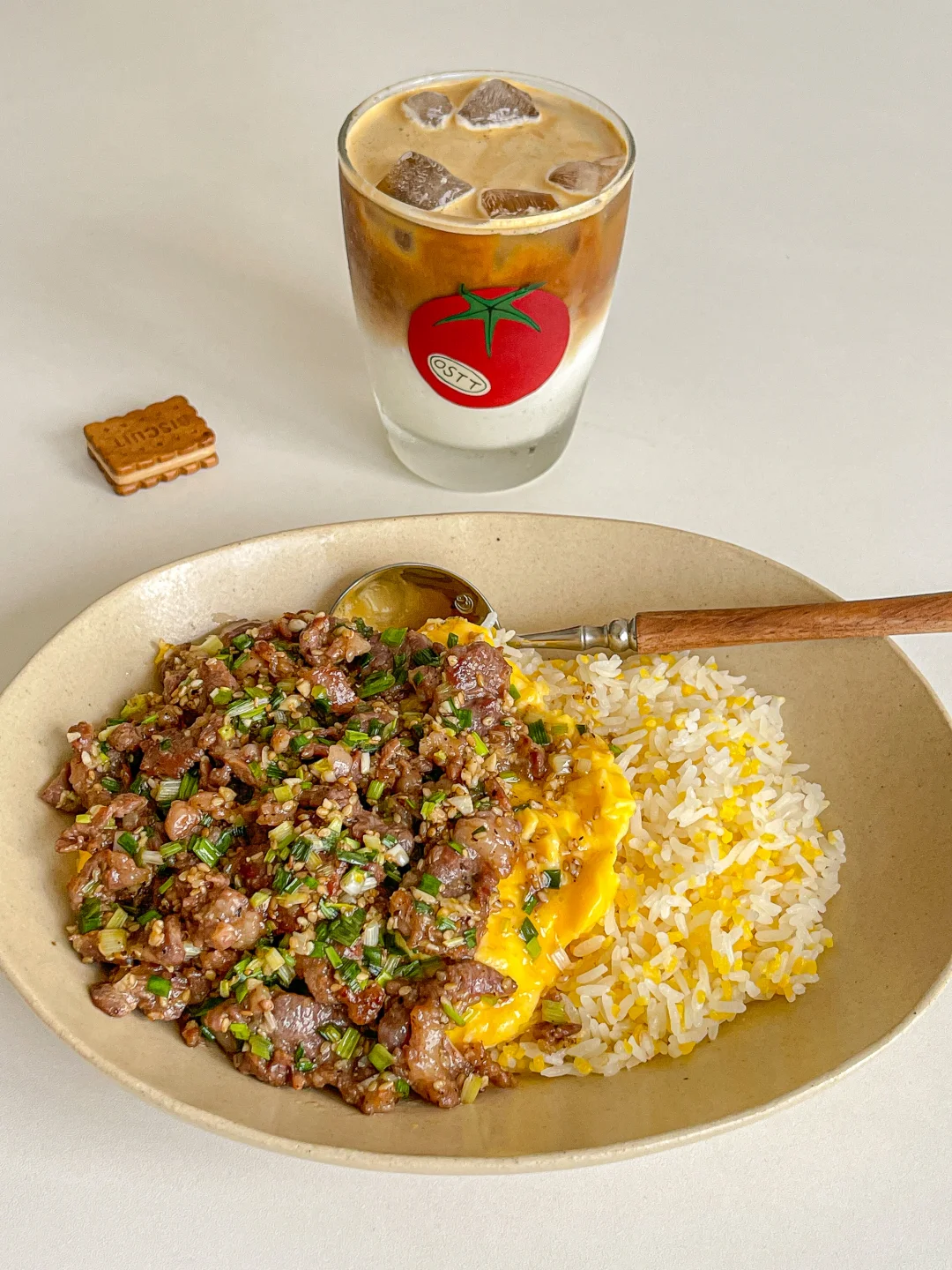 干净饮食🥣盐葱牛肉滑蛋盖饭🍳拿铁☕️