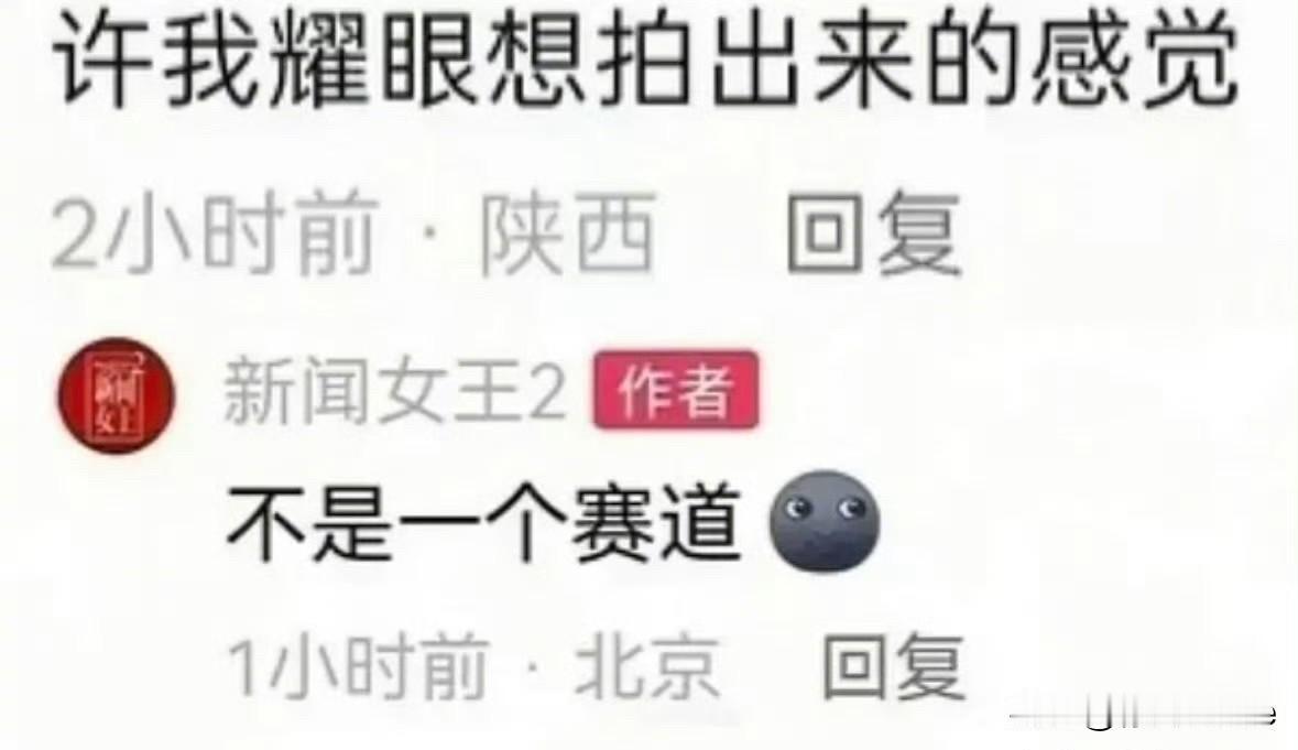 10月29日,《新闻女王2》向赵露思道歉,只因官方账号皮下一句回答,真的离谱! 有网友点评《新闻女王》是《许我耀眼》想拍出来的感觉,本来是一句很平常的话,官方账号回复,不是一个赛道的,本来也是一句很平常的话,可就这么平常的两句话,引发了一场风波,这场风波一开始以赵露思方占正方,后面网友认为太小题大做同情被辞退的皮下,皮下占正方,再后面拿皮下表情包说事,一时之间,公说公有理,婆说婆有理 其实这事就是很小的一件事被放大了,网友说的没错,皮下说的也没错,就是有些敏感的人想太多了,有些看热闹不嫌事大的人把这件事高度拉升了,要我说,没有可比性! 赵露思《许我耀眼》爱情是侧重点,对于角色职业要求不高只需要模仿外形,而佘诗曼《新闻女王》职场是侧重点,对角色要求很高!