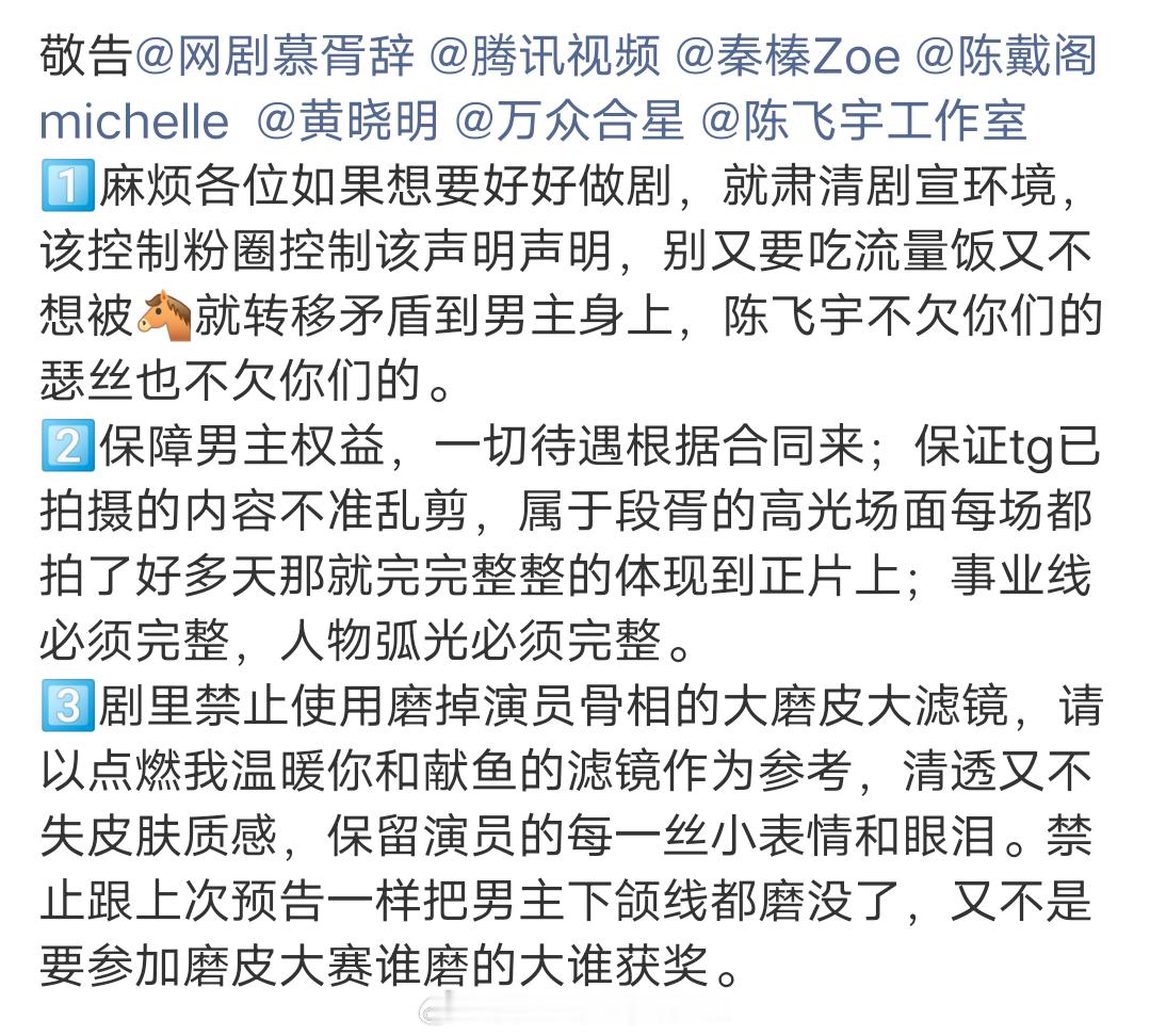 塑造好的剧宣环境,保障男主权益,拒绝大磨皮大滤镜