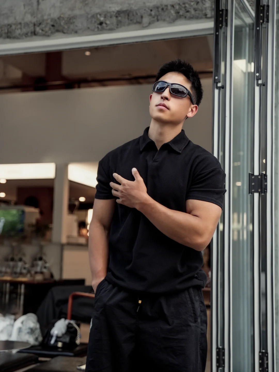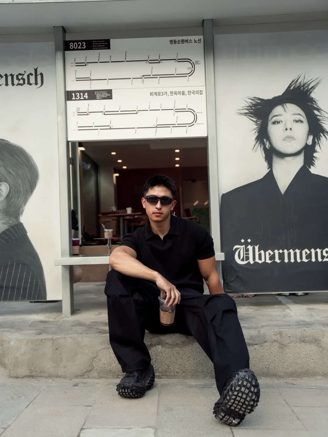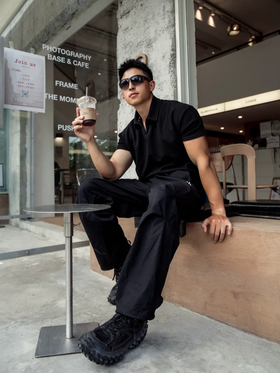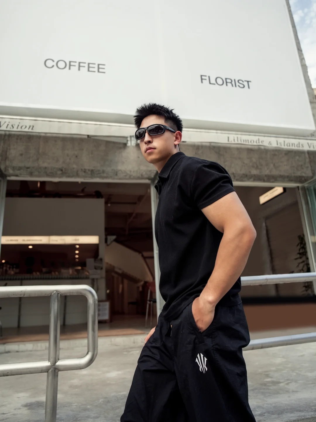 宽松却不臃肿的裁切,藏住粗腿焦虑,撑起细腿气场,搭配Lilimode的工业风背景,随手拍出“腿长两米”的机能感构图。