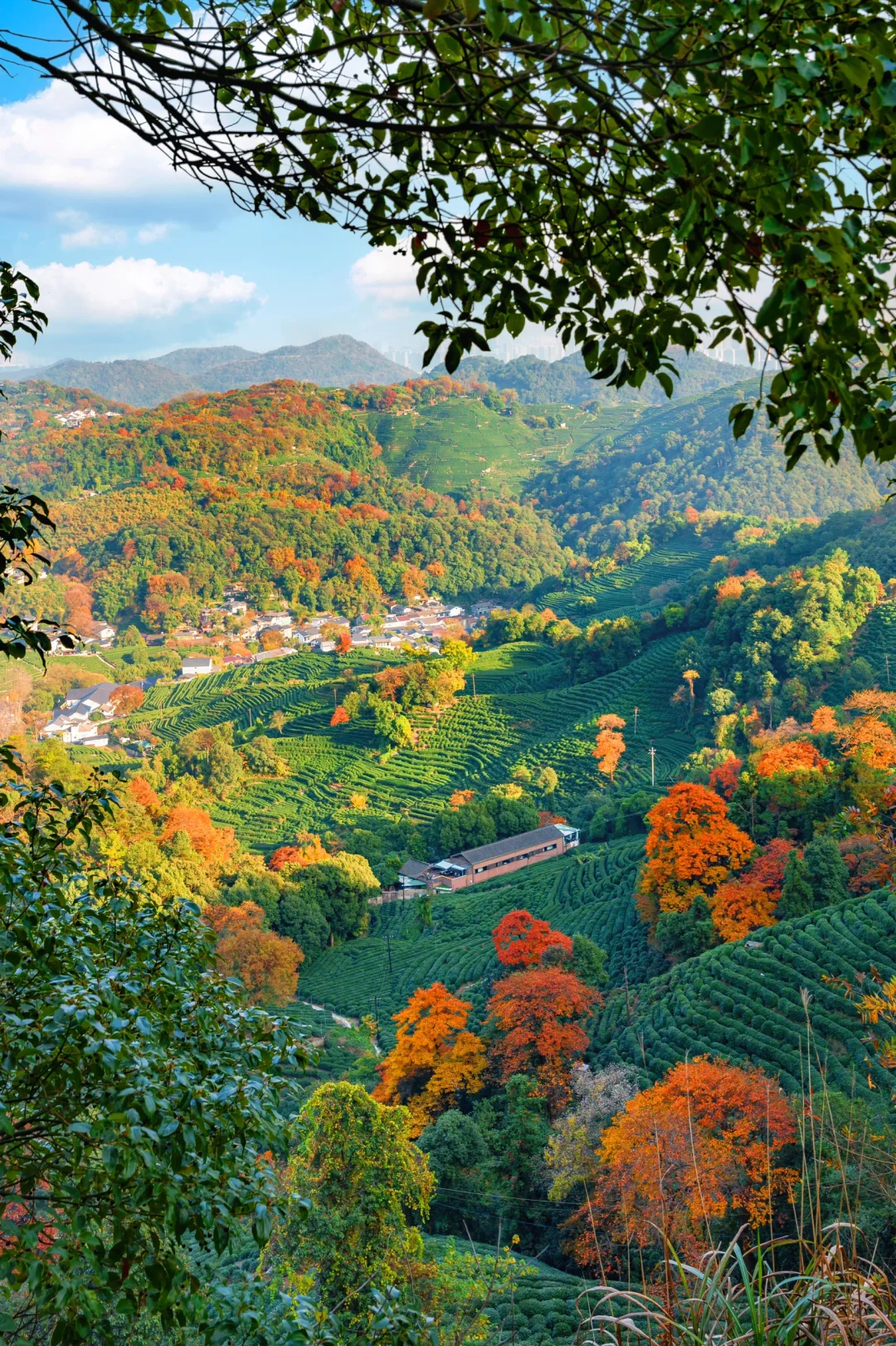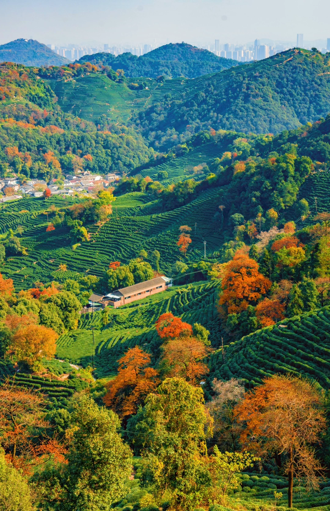山顶最高处,视野最好的位置,能俯看茶园和龙井村,天气好还能看到西湖,拍照很绝。