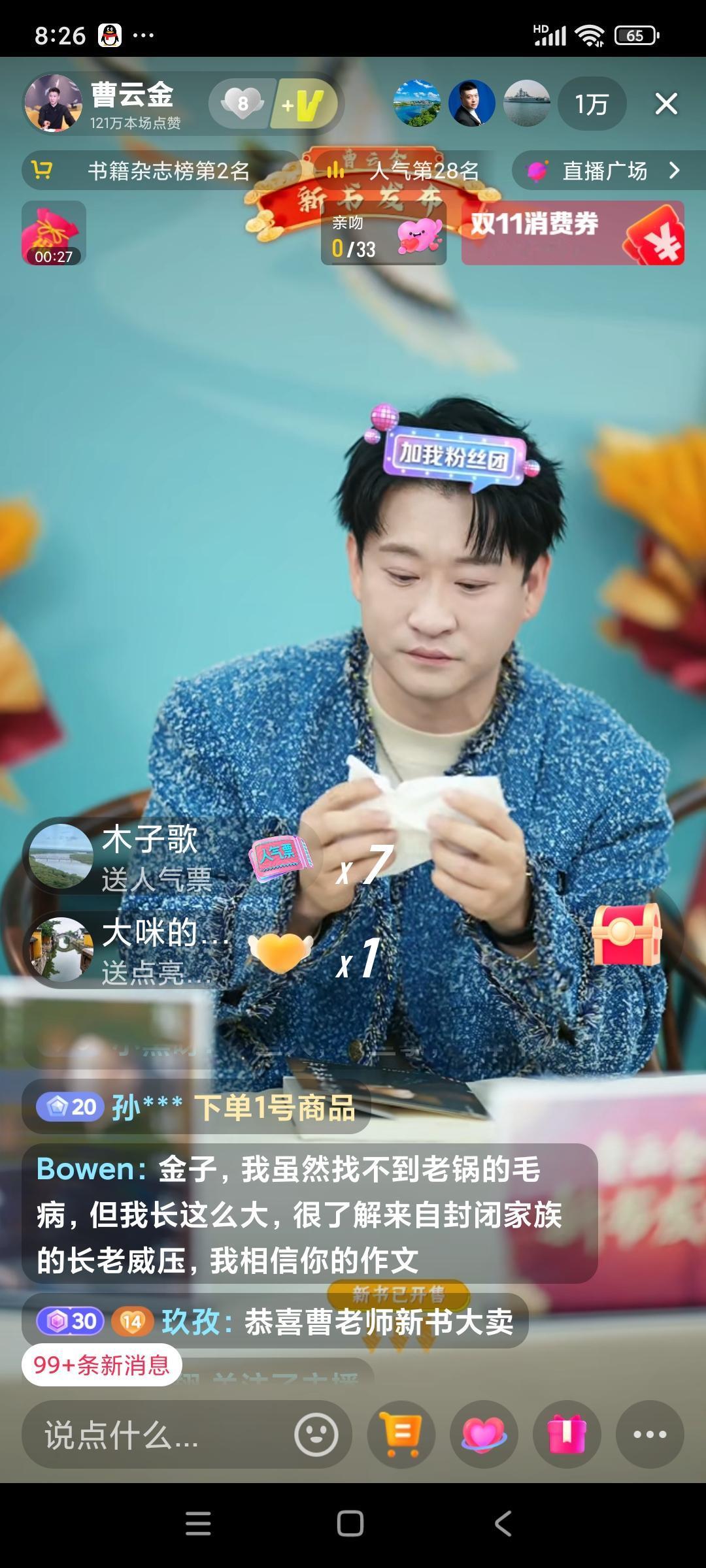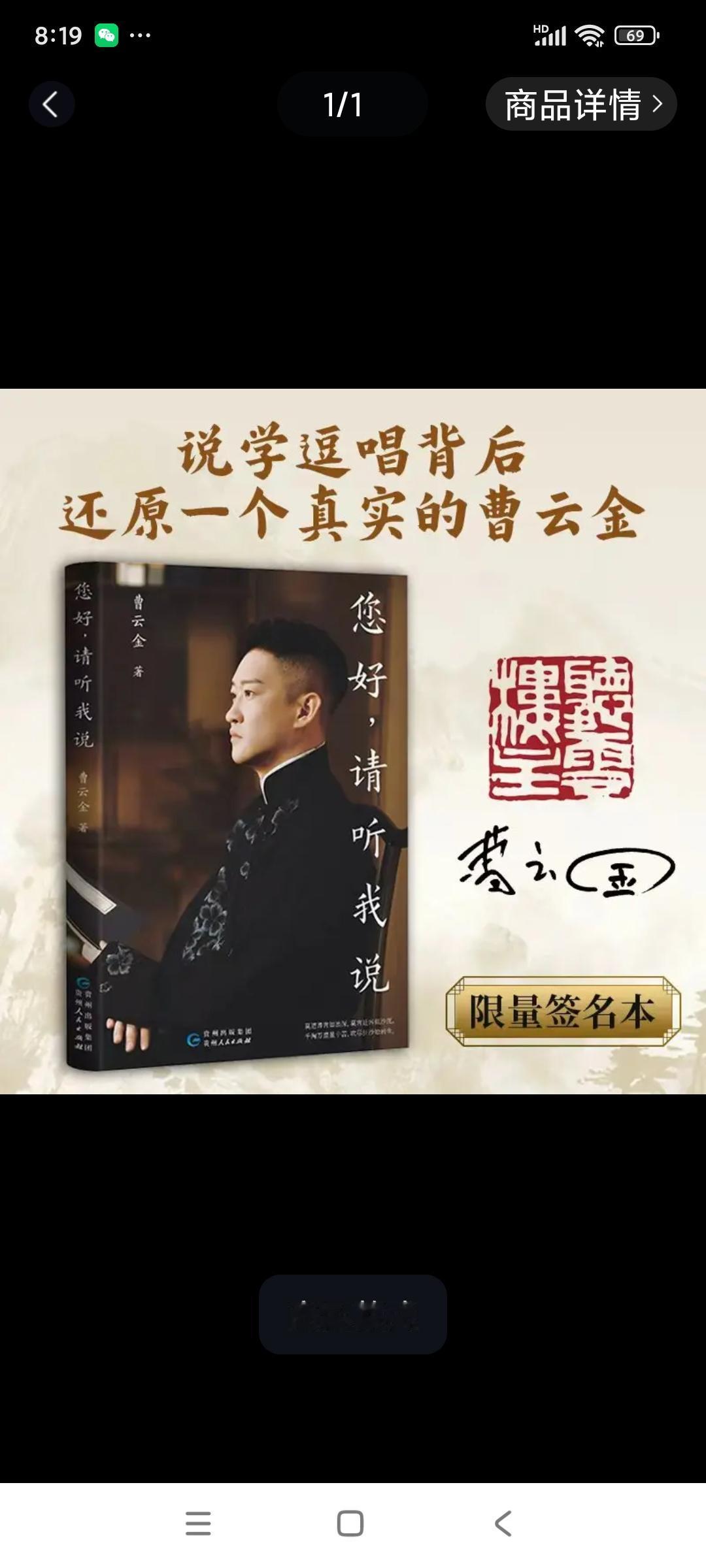 盼了几年的曹云金的自传出来了!我赶紧买了一本。 昨天曹云金的自传《您好,请听我说》在他的直播间开售,前4000本有他的亲笔签名。 曹云金在直播中剧透了他的自传前面几个章节的一些内容,第一章讲到了他年幼丧父的经历,他第一次在直播的时候流眼泪,听众也十分动容。后面几个章节讲到了一些大众长期以来十分好奇的事,例如前师傅“生日宴”。 昨天曹云金直播观看人数最多的时候4.8万人在线,他的自传卖出了大约7000本,成绩还是很不错的,金粉们都买了没?