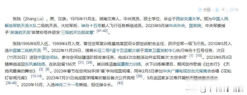 深夜发射,年轻人上天,地方开始抢人 明天晚上11点44分,神舟二十一号要升空,这不是普通的发射,挑在半夜,大多数人早都睡了,以前发射都选白天,大家能盯着屏幕看,跟过节似的,现在不一样了,官方没打算让所有人都守着屏幕,而是让大家第二天再回看,可还是有人熬夜等,看完就发朋友圈,日子一久,也成了新的习惯。 这次上去的三个人,背景都不太一样,张陆是老面孔了,以前飞过神十五,这次第一次当指令长,他不是新人,也不是那种一次性的英雄,说明航天员能反复上天,不用非得一战成名,武飞是90后,最年轻的在轨航天员,老家在内蒙古草原,从小放羊,现在成了国家航天员,他的故事有点特别,一个牧区的孩子怎么就被选上了,背后是国家在到处找人,不光看城市,也看农村和边疆,张洪章更不一样,他是搞科研的,不是飞行员出身,山东大学毕业,后来进了中科院,他上去不是开飞船,是做实验,论文比军功章还管用。 任务安排也挺讲究的,他们要在太空出舱四次,比以前多了一倍,这说明空间站不光是住人的地方,也开始干活了,机械臂能快速换设备,实验模块也能随时拆装,效率高了不少,乘组里有管指挥的,有管设备的,还有专门搞科研的,这种搭配以前少见,原来军事主导的航天体系,现在慢慢往科研这边靠了。 地方上也开始动起来了,张陆是湖南汉寿人,当地正规划一个航天文化小镇,想靠他的名气拉点旅游人气,武飞来自内蒙古达尔罕茂明安联合旗,那是旗里第一个航天员,政府琢磨着把他的村子改名叫武飞村,打算搞点文旅项目,张洪章是山东滨州人,从山东大学出来的,他能入选说明地方高校也能出航天人才,中科院和地方大学这么合作下去,航天员的来源地也在慢慢变。 发布会定在明天上午九点十分,发射安排在后天夜里,他们要在天上待六个月,预计明年四月底回来,这次任务没什么响亮的口号,也没搞大张旗鼓的宣传,但它悄悄改了点东西,看热闹的人变了,航天员的组成变了,任务的目标也变了,人们不再只是盯着看,开始想知道他们在天上干啥,怎么干,为啥这么干。