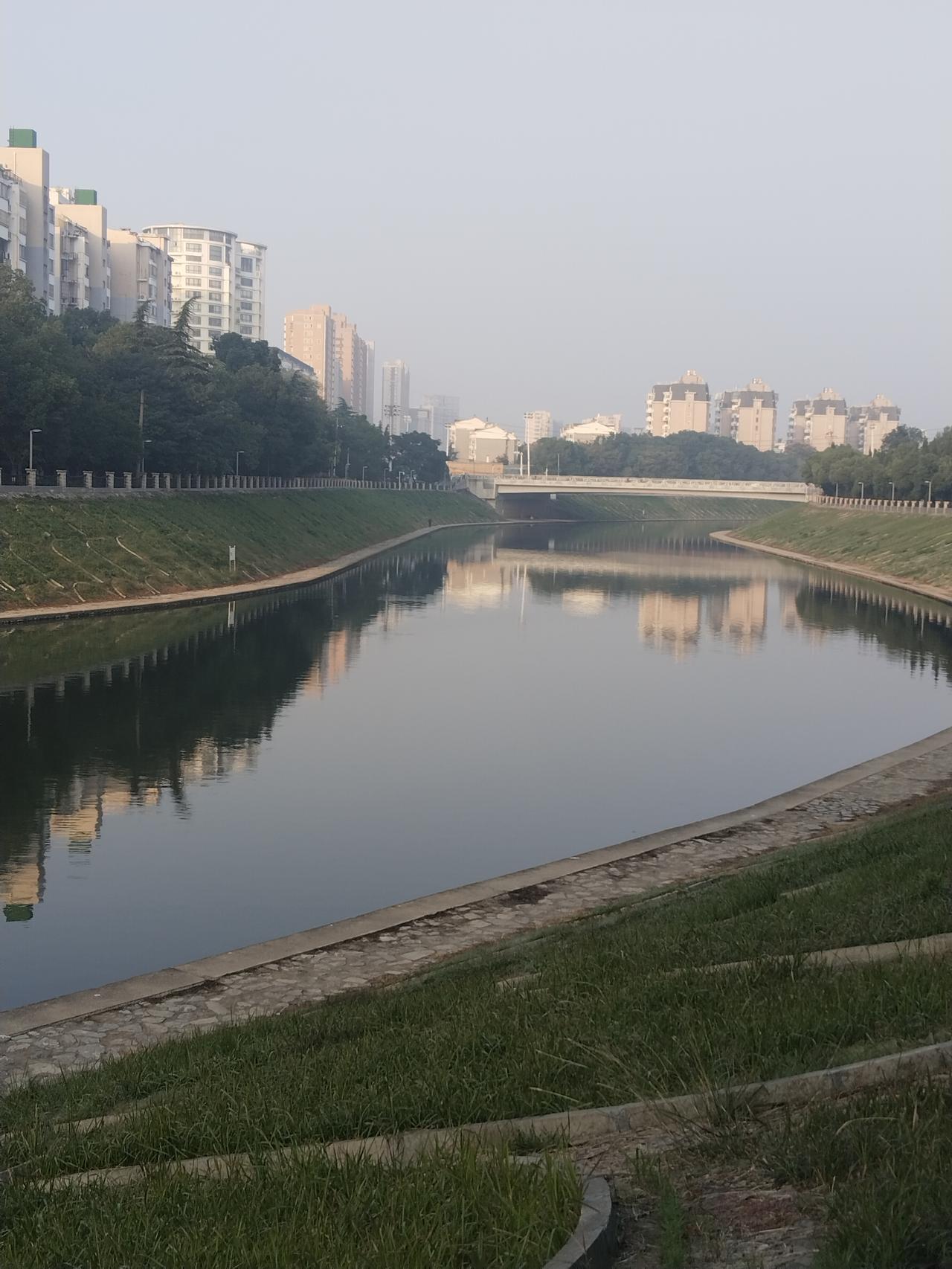 清晨的阳光 透过云霞穿过高楼 斜洒在 银色的淝河上 让人感觉到神清气爽 不经意就
