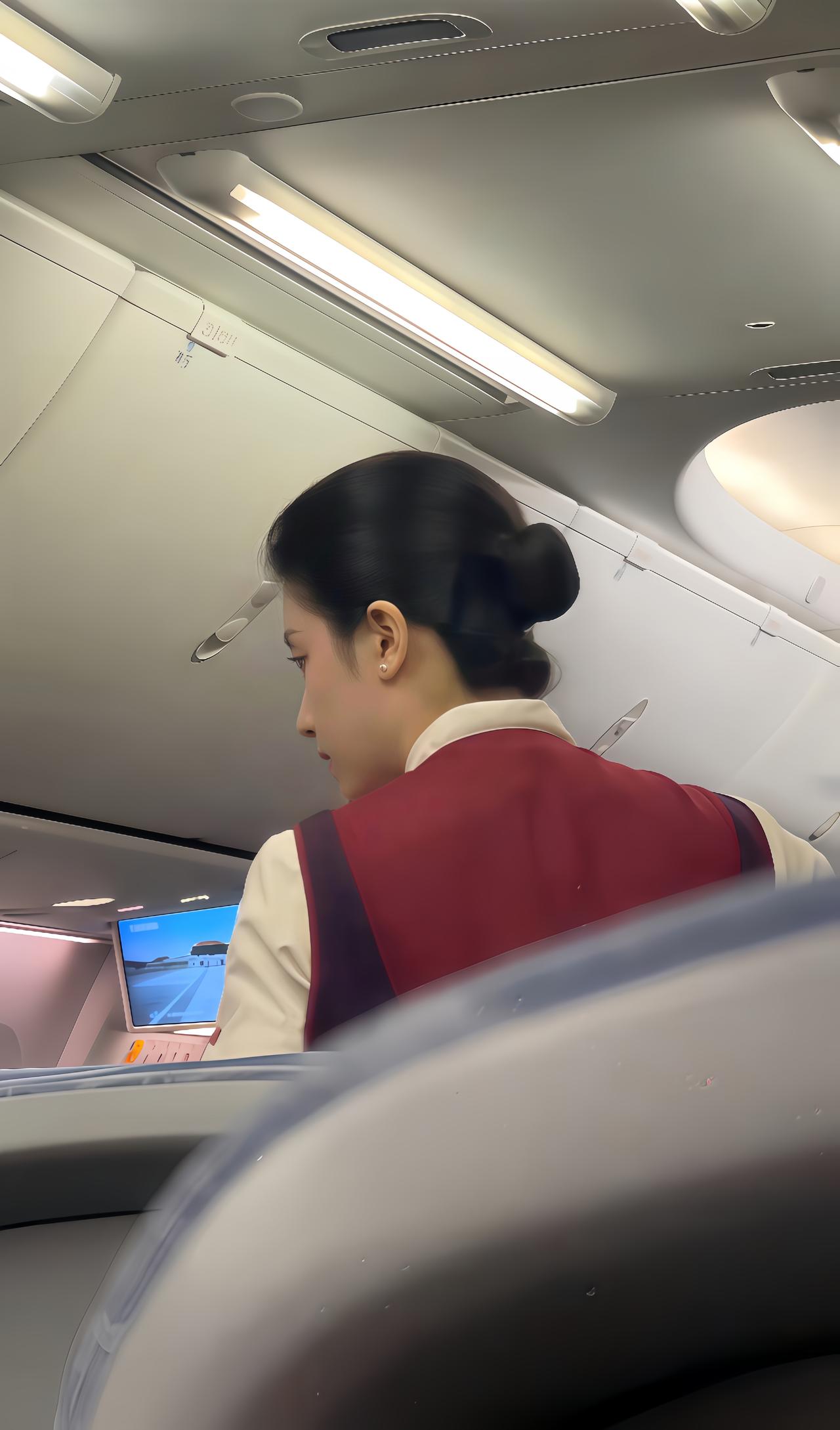 空姐在飞机上微笑服务,温暖人心