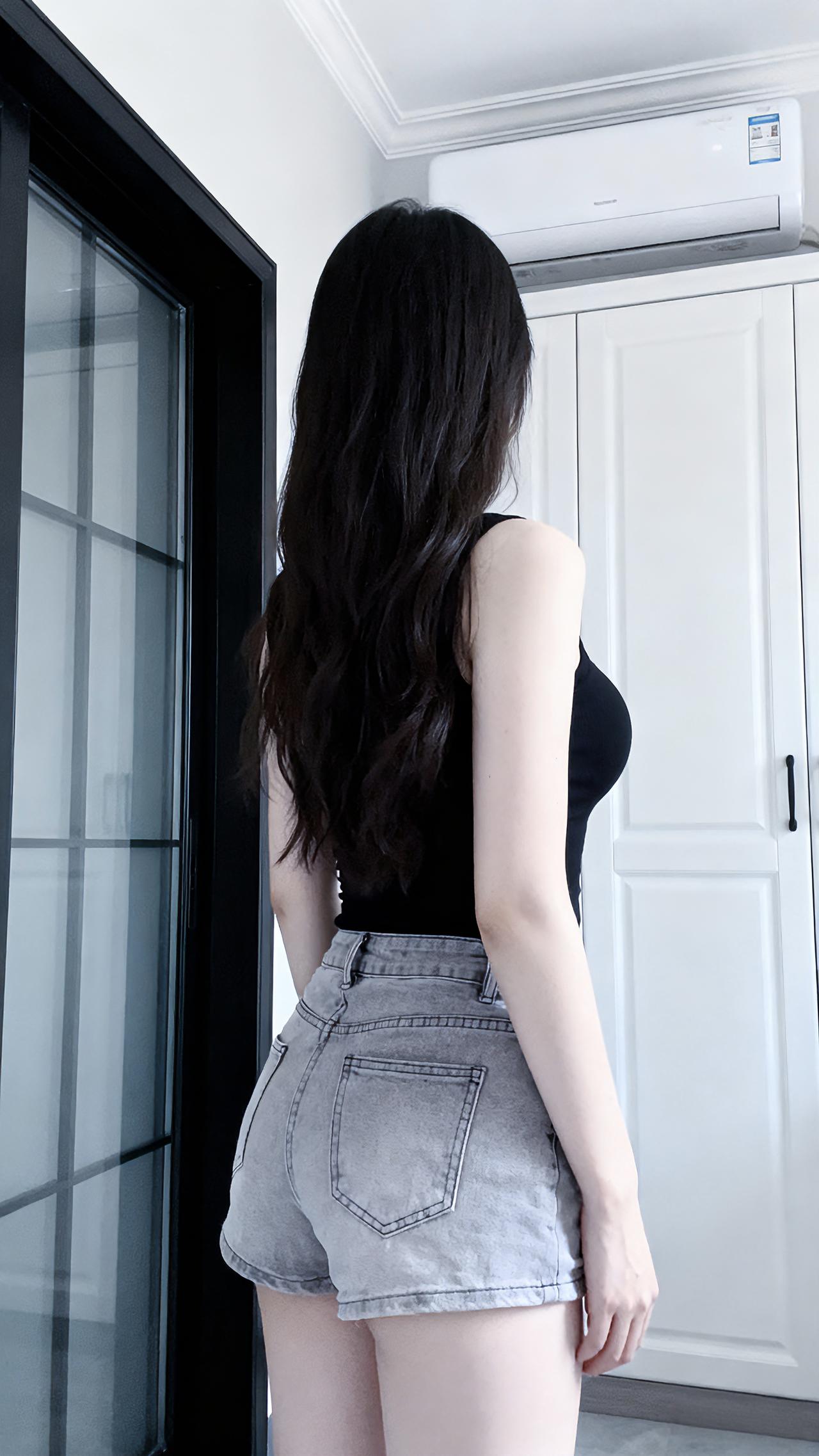 超模既视感!“显瘦又吸睛”的穿搭:黑背心+灰牛仔短裤 这套万能搭配的独家显瘦