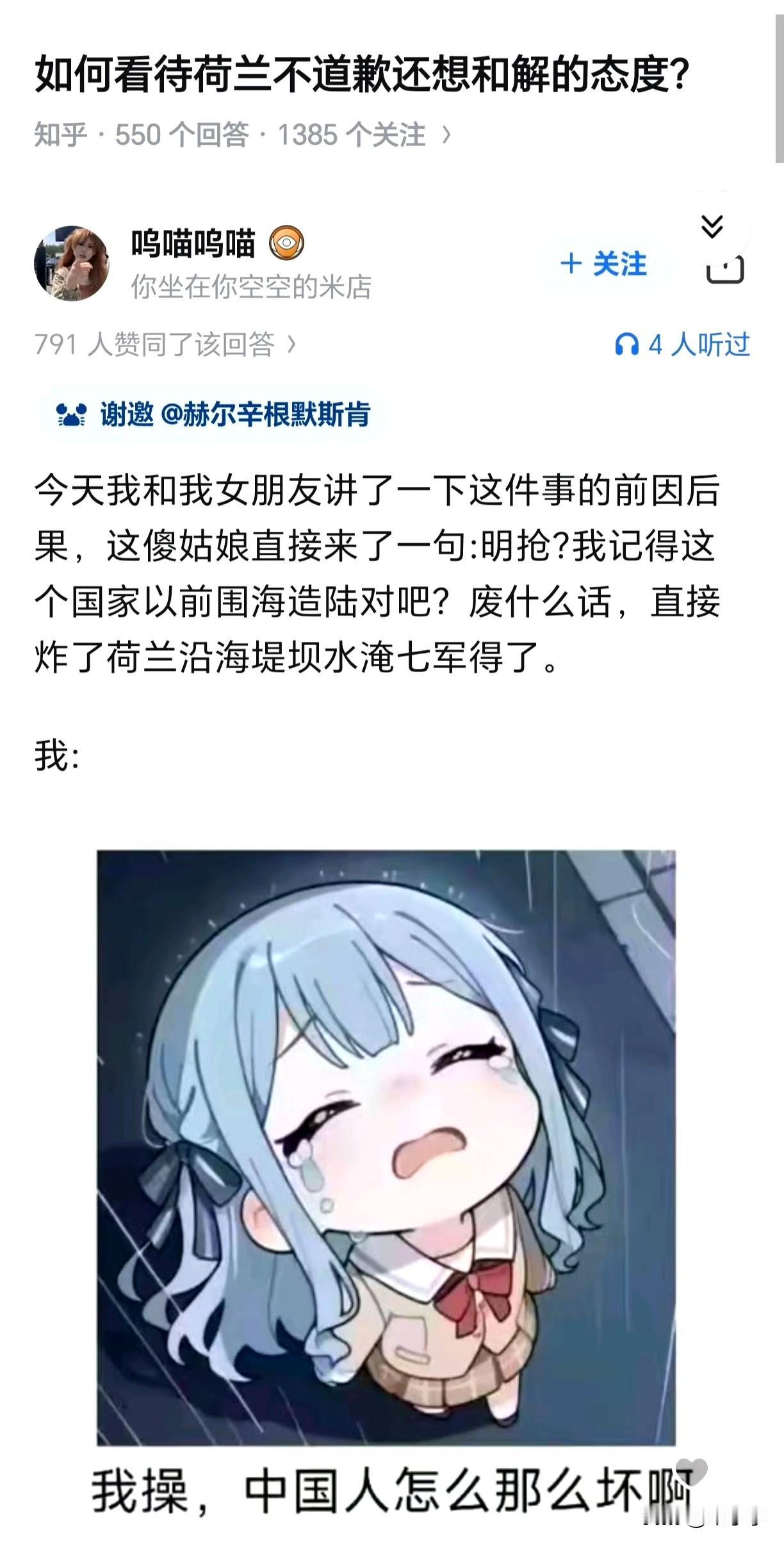我咋没想到呢?[流泪]这妹子真的可以的,首先具有足够的斗争和抗争精神,其次知识储备非常到位,再次可以综合自己的知识变为斗争的工具,最后报复力度足够硬。[赞]荷兰安世事件