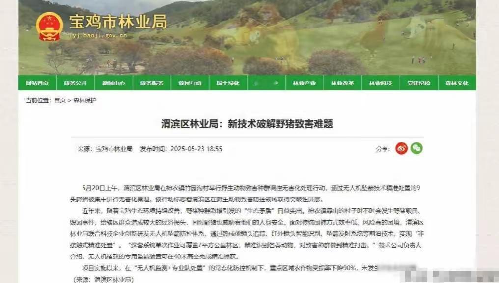 为民除害?陕西无人机挂箭打野猪,一晚射杀近20头,林业局回应 专家们想的是“保种群”,他们要维持生态平衡,坚持野猪在生态链中不可或缺,必须保留最低数量。 来源:字里行间见 在这个信息爆炸的时代,我们习惯了快节奏的生活,也逐渐忽略了人与自然之间微妙的平衡。近日,陕西一场令人震惊的“无人机挂箭猎杀野猪”事件引发了广泛关注:一夜之间,近20头野猪被射杀,这背后到底隐藏着怎样的生态智慧?有人说,这是“为民除害”的必要之举,但有人则提出,真正的生态保护应当是一种智慧的调控,而非单纯的杀戮。 专家们的观点值得深思——他们强调“保种群”,维护生态平衡,确保野猪在生态链中扮演不可或缺的角色。野猪作为草食动物之一,在自然界中扮演着“翻土工”和“种子传播者”的角色,它们的存在关系到森林的更新和土壤的肥沃。然而,当野猪数量超出合理范围,带来破坏和威胁时,我们又该如何应对?这正是一场关于“智慧管理”的考验。 试想一下,科技的力量正逐渐渗透到生态保护中。无人机、精准打击,既可以减少传统捕猎带来的粗放和不确定性,也能实现对野生动物的科学调控。它不是简单的“杀戮”,而是一种在保证人畜安全、维护生态平衡的同时,尊重自然规律的智慧行动。 更值得一提的是,这种行动背后,是对生态系统复杂性的深刻理解。我们不应一刀切,而应因地制宜,制定科学合理的管理措施。保护野生动物,既要尊重它们的生存权利,也要考虑到人类的切身利益。只有这样,生态的“平衡钟”才能走得更远。 这次事件也引发了公众对于“生态保护”的思考:我们是否过于追求“零风险”而忽视了生态的动态平衡?保护野生动物,不能只靠“禁猎”或“猎杀”,更应依靠科学、智慧和责任感。正如专家所说,野猪的存在是生态系统的一部分,我们要做的,是理性调控,而不是盲目“清除”。 未来的生态之路,应该是一场智慧与责任的较量。科技赋能,让我们更好地理解自然,也能更有效地保护自然。只有在尊重生态、科学管理的基础上,我们才能实现人与自然的和谐共生。让我们共同期待,科学与温情交融的生态未来,为我们的子孙后代留下一个真正“和谐共存”的家园。