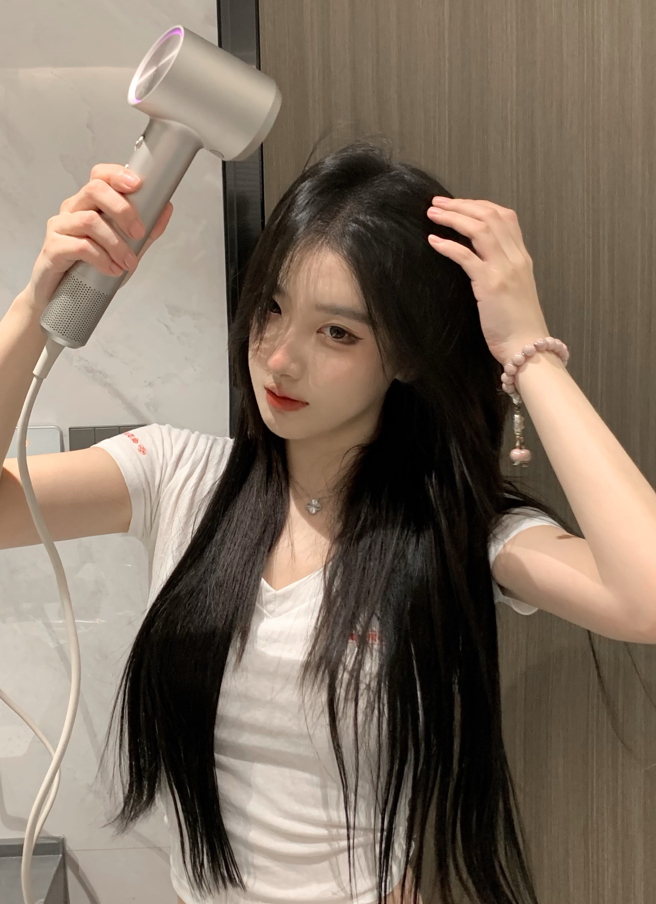 风速也超快!像我这种中长发,以前吹干要十几分钟,现在5分钟左右就搞定~我一般喜欢开循环风交替吹,冷热风自动切换,吹出来就是蓬松不扁塌的头顶+柔顺有光泽的发尾,氛围感发型一步到位!真的好好用,狠狠推荐一下!