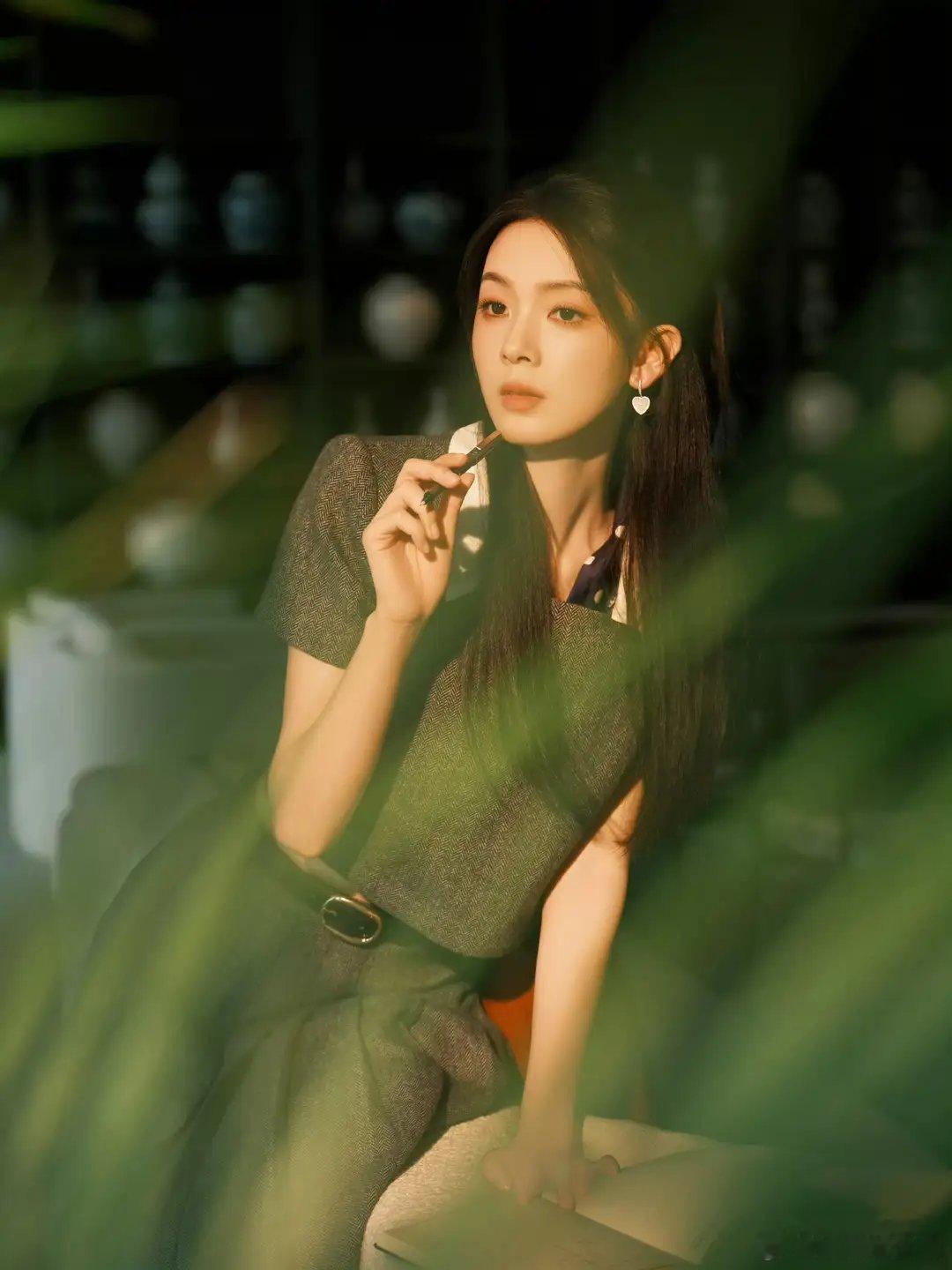 赵丽颖以温暖栗棕色系为核心,兼具轻盈御姐风与温柔气质。