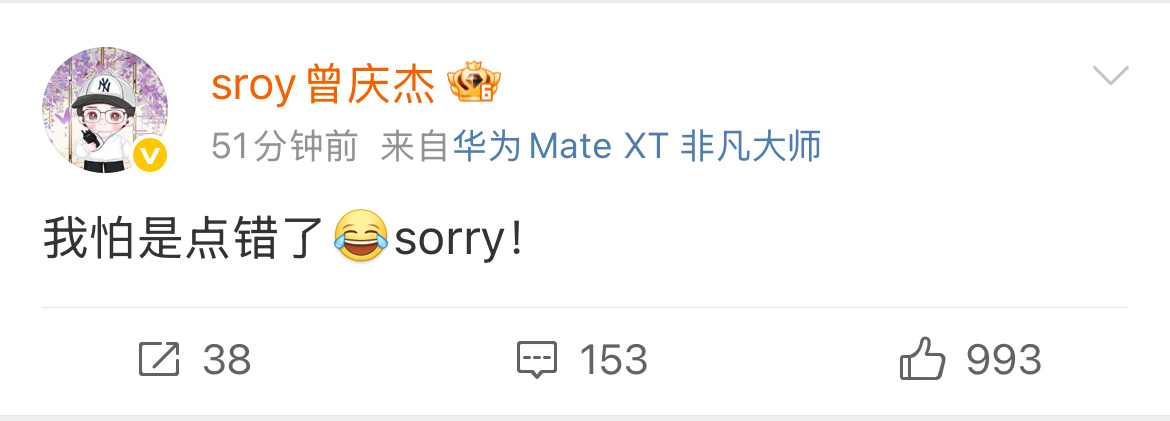 曾庆杰手滑 曾庆杰转发于正黑帖