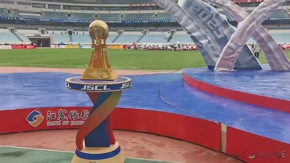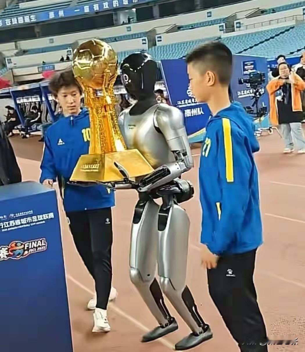 苏超今日收官,南通队与泰州队争夺首届冠军。此役看点十足,冠军奖杯造型神似大力神杯,金色足球由支柱撑起,底座刻有“江苏省城市足球联赛”,通体金黄,颇为酷炫。 颁奖环节科技感满满,组委会邀机器人颁奖并提前预演。预演时机器人行走不稳,两名工作人员紧盯,生怕奖杯掉落。网友调侃别摔成13块,让十三太保一人一块。也有人建议明年将底座设计成可拆分的,各城市先拿自己那块,最后由冠军拼装。比赛采用世界杯同款转播系统,观赛体验值得期待,静候冠军出炉! 可惜运气差没买到票,求购一张。