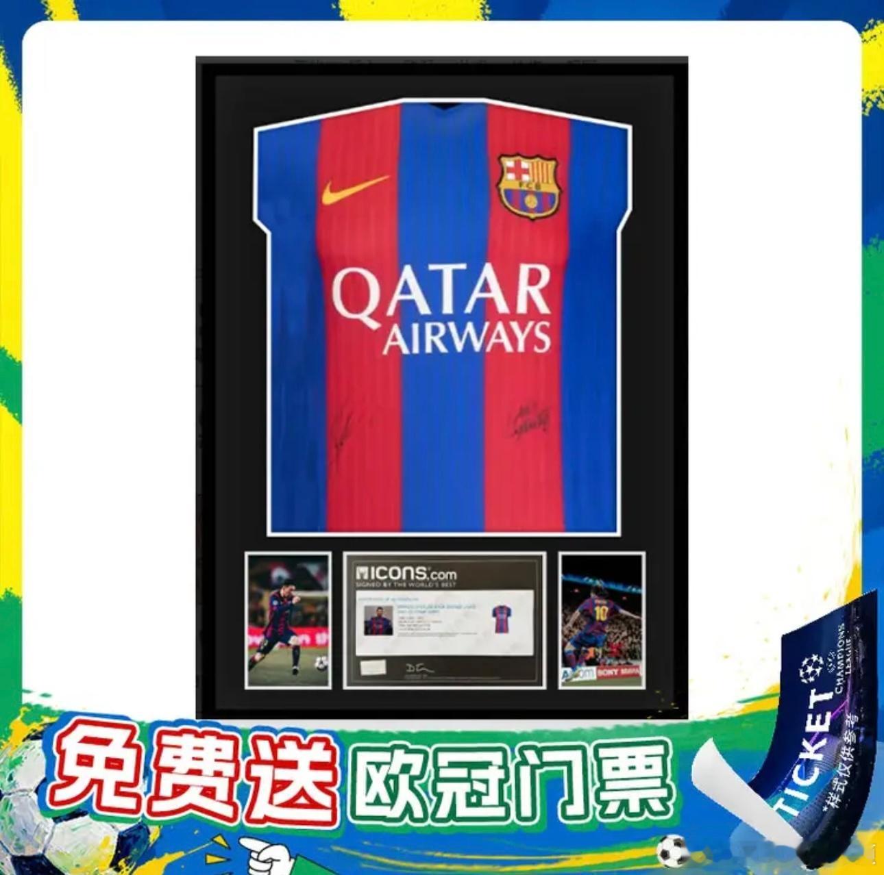 梅西C罗签名球衣京东拍卖梅西和苏亚雷斯亲签的2016—17赛季巴萨球衣……C罗亲签的2017—18赛季皇马球衣……杰拉德、阿隆索等亲签的伊斯坦布尔欧冠决赛球衣……