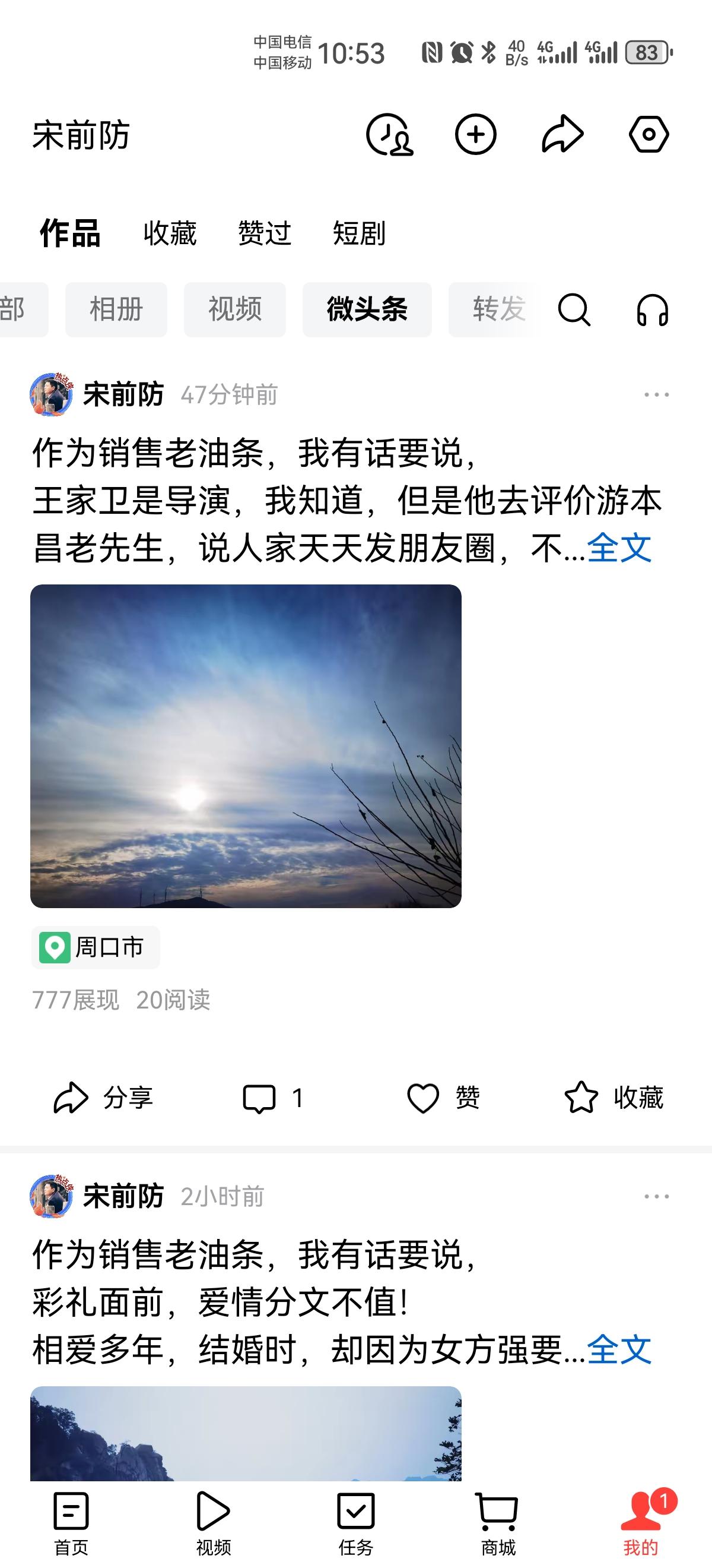 作为销售老油条,我有话要说, 我得吐吐槽: 请教请教头条,“全部”不包括“微头条”?“微头条”包括“全部”是不是?我写了段文字,发送之后在“全部”里面没找到,还以为是其中某些文字违反了什么被屏蔽了呢,结果在微头条里找到了?这到底是何原因呢?请头条告知。
