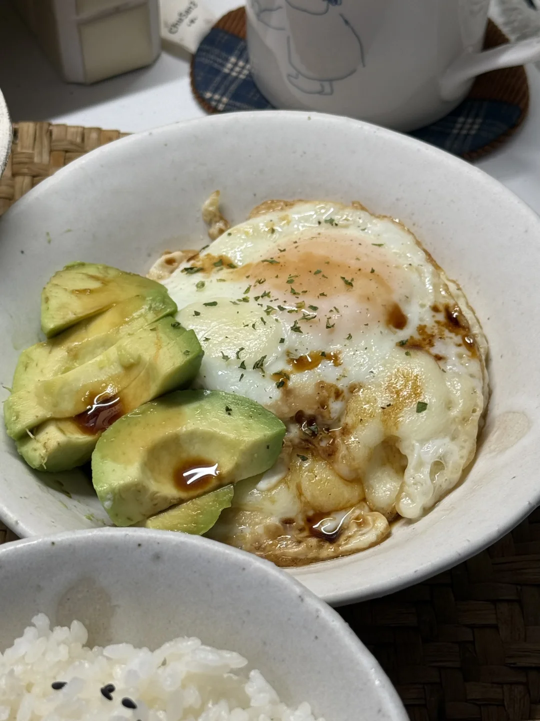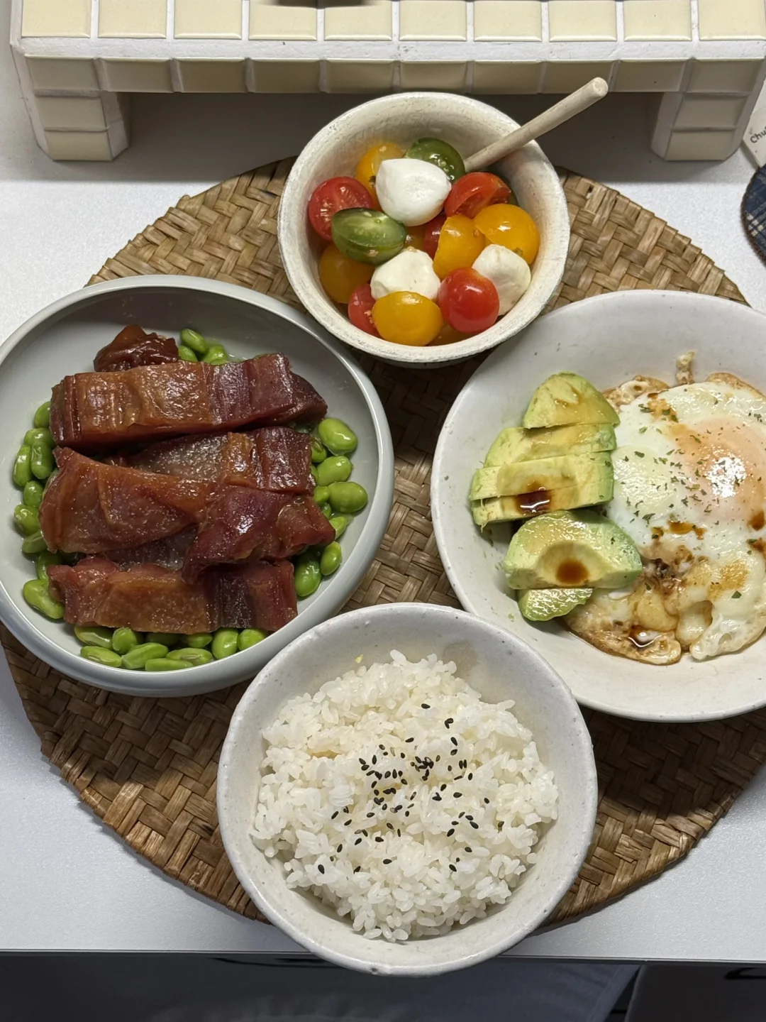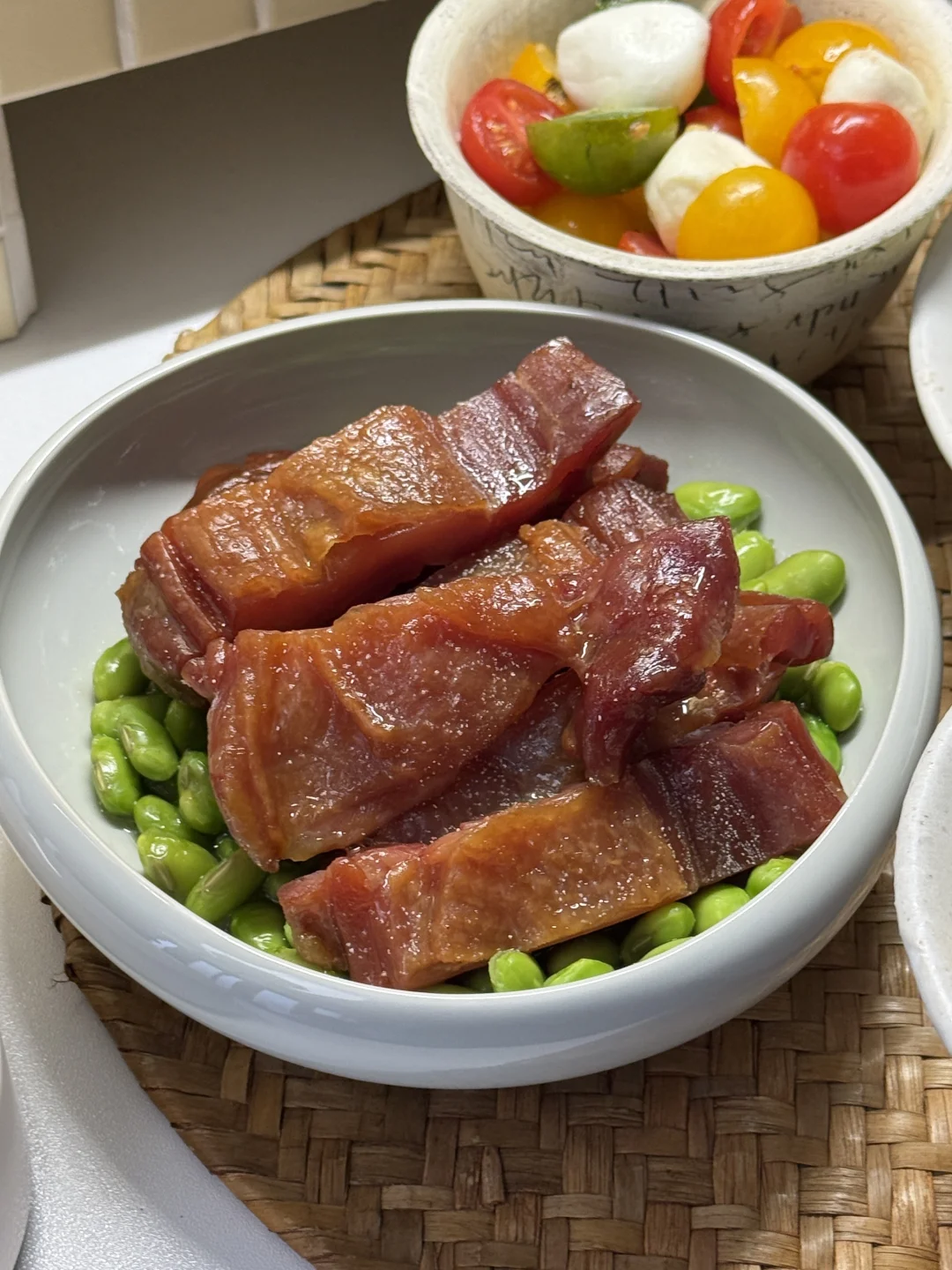 耶今天放假🏖️ 躺了一天总算是饿了😋 - 简简单单做了毛豆蒸腊鸡腿🍗 煎了溏心酱油蛋(额外放了芝士球 还有糖滋小番茄🍅 -