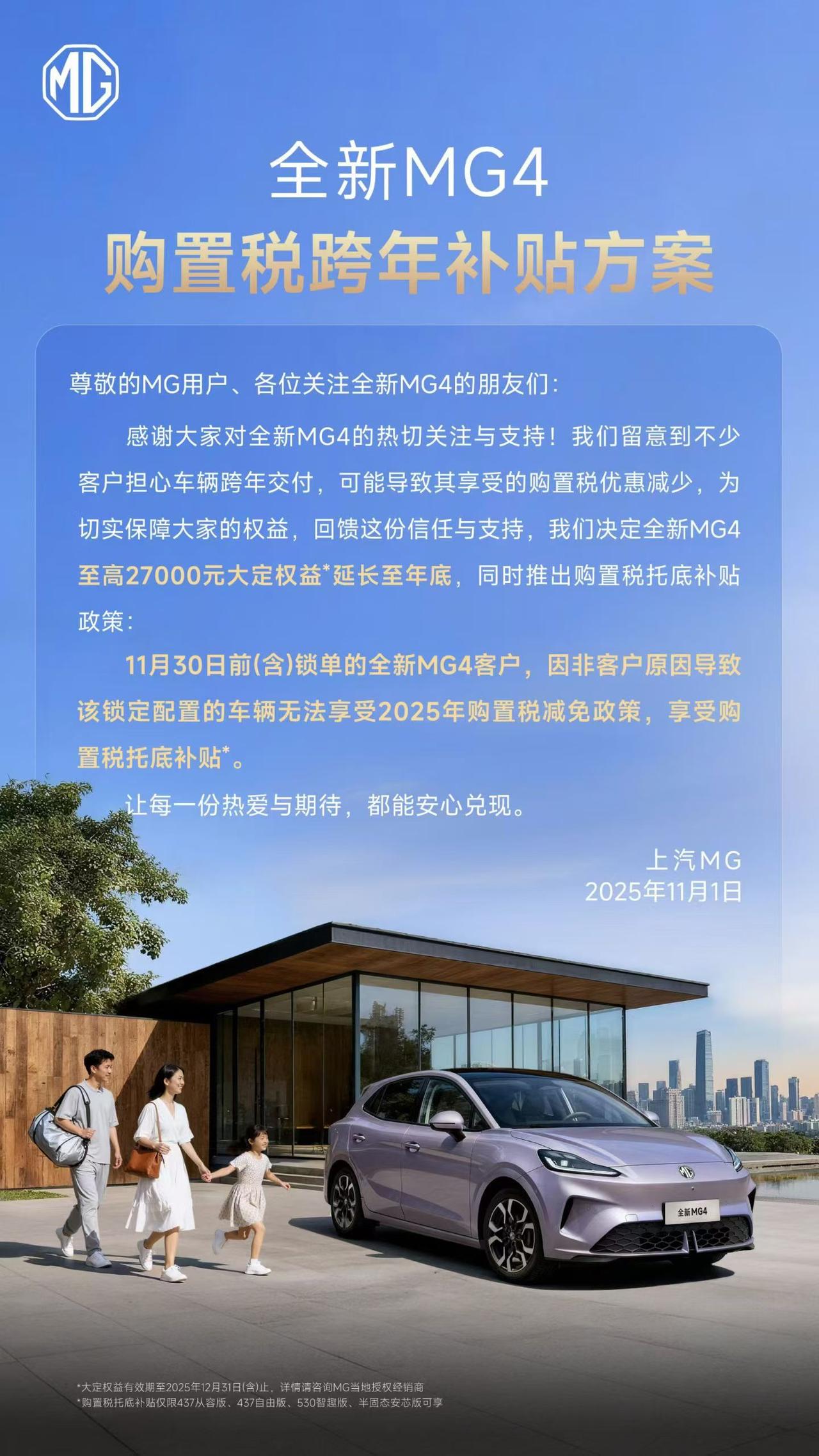 全新MG4累计大订已经突破60000辆,产能爬坡,交付压力必然很大,现在又推出购置税跨年补贴方案,无疑给消费者吃了一颗定心丸,放心买,安心等,25年还有两个月,大订破100000台,应该是轻轻松松,估计俞总已经准备带着陈萃总去工厂打螺丝了!
