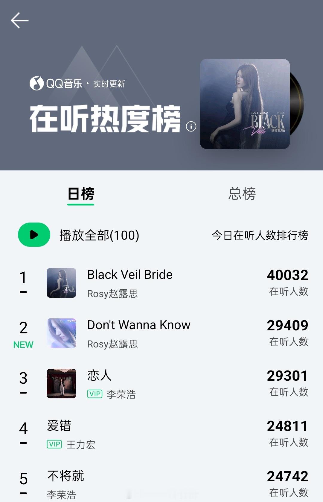 赵露思新歌刚上新,目前QQ音乐实时收听人数已经前二占二
