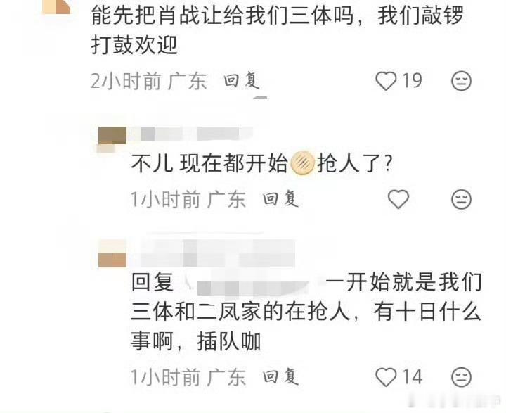 这两天肖战将主演《十日终焉》的网传消息刚一曝光,连《三体》的“饼”都赶来抢人啦!网友忍不住喊话:“能不能先把肖战让给我们三体呀,敲锣打鼓欢迎👏[嘻嘻]” !