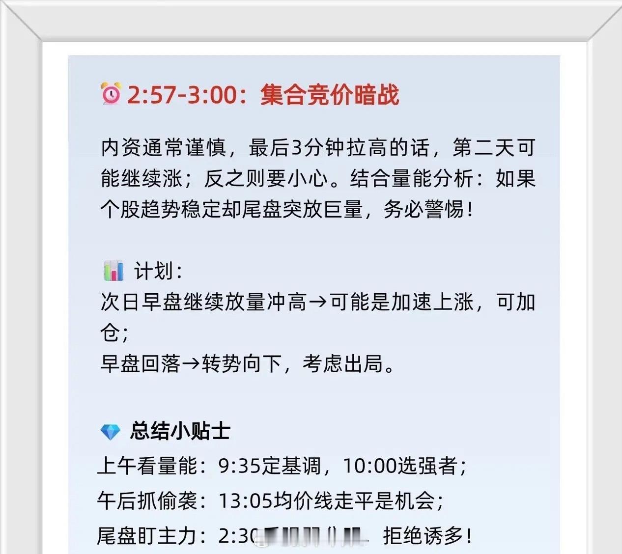 - 内资暗战:最后3分钟拉高可能预示次日续涨,但需结合量能: