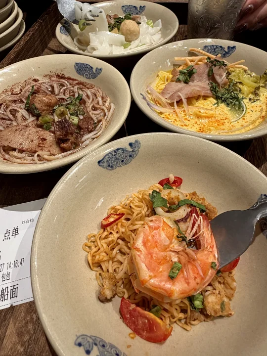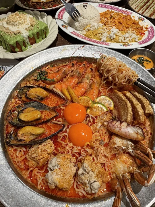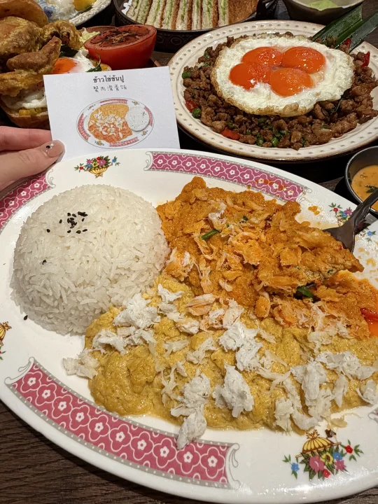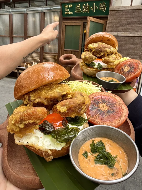 泰兰德同款泰国菜吼吼吃😭…… - ✔️软壳蟹汉堡 软壳蟹形状的汉堡🍔中间是一整颗流心蛋!! ✔️小碗船面 不用去泰兰德!义乌也能吃到同款船面啦🍜好多口味爽吃! ✔️泰奶布丁 QQ弹弹的泰奶布丁🍮泰奶脑袋尊嘟无法拒绝!!!