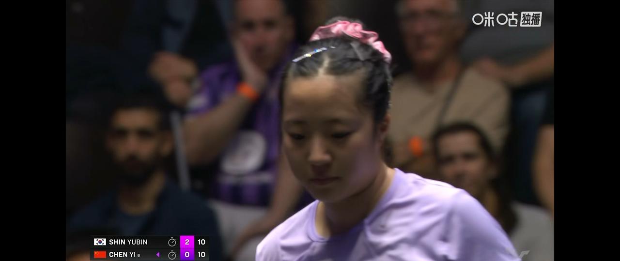 蒙彼利埃冠军赛女单八强战,陈熠对申玉斌。前两局陈熠连输,第三局打到9比10时,申玉斌叫了暂停。暂停回来后,陈熠追成10平,靠个擦网球得分,最后12比10赢下第三局。现在大比分陈熠1比2落后。 教练喊暂停本来想稳住,但关键时刻陈熠抓住机会反超。那个擦网球确实运气好,但能顶住压力也说明调整得快。第四局马上开始,这场打完才能知道谁进半决赛。 两人都是年轻选手,前三局拼得很凶。陈熠要是能再赢一局,比赛就会进入决胜局。现在比分咬得很紧,看接下来谁能抓住机会得分了。