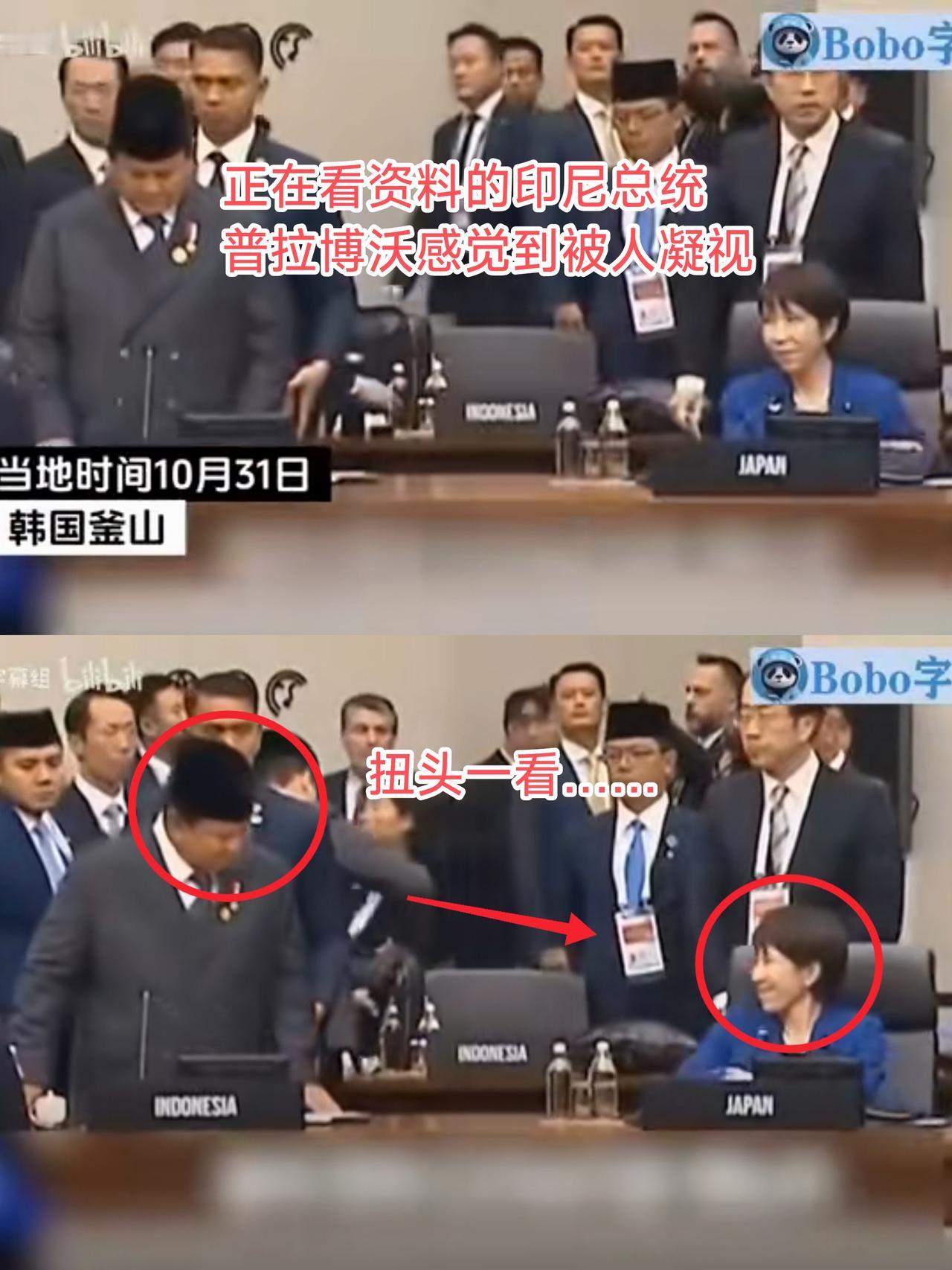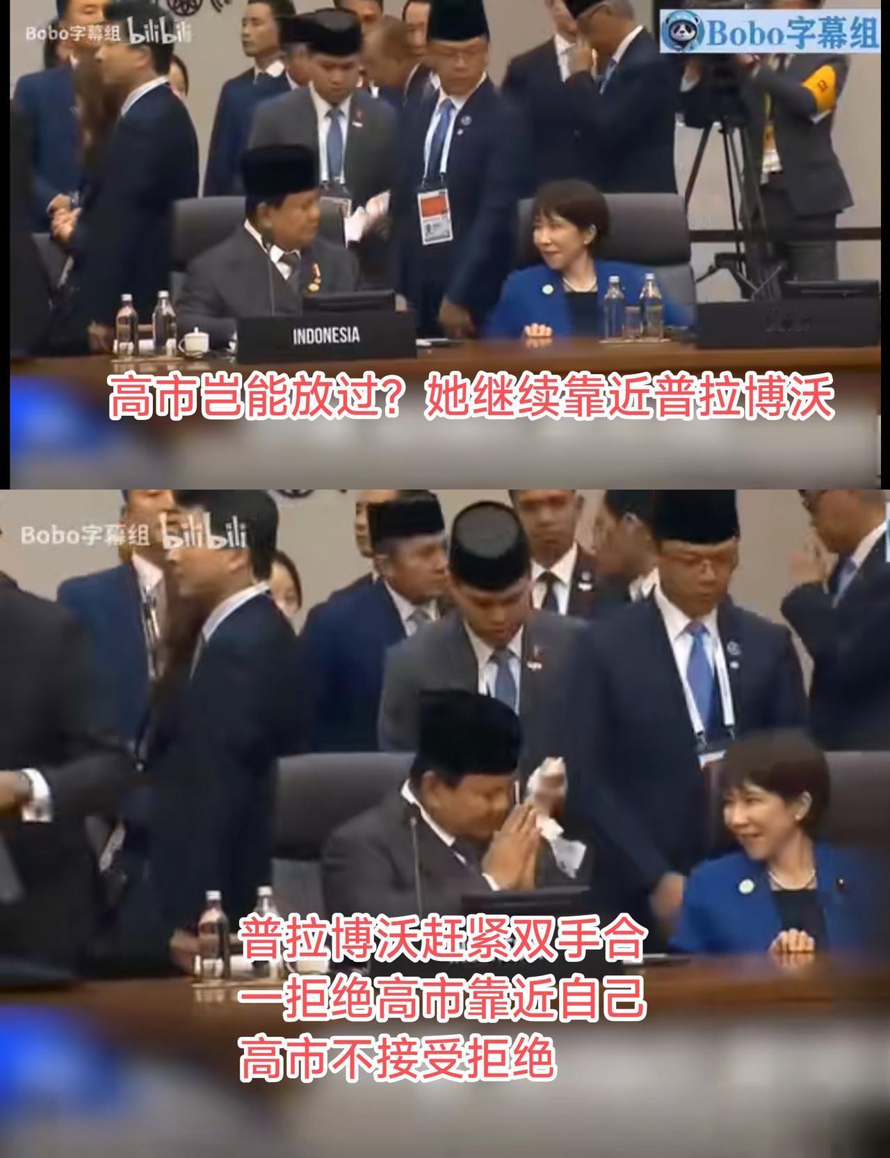 日本首相高市早苗去韩国不是去开会,是去寻找猎物的。她悄悄接近、靠近印尼总统普拉博沃的这一幕,把日本人心思缜密,为达到目的可以有多么阴险的本质,以教科书般不堪入目地表演出来。 尽管印尼总统极力拒绝她的靠近,但他低估了日本人的恬不知耻。估计这个过程给他强忍恶心才没吐出来吧?